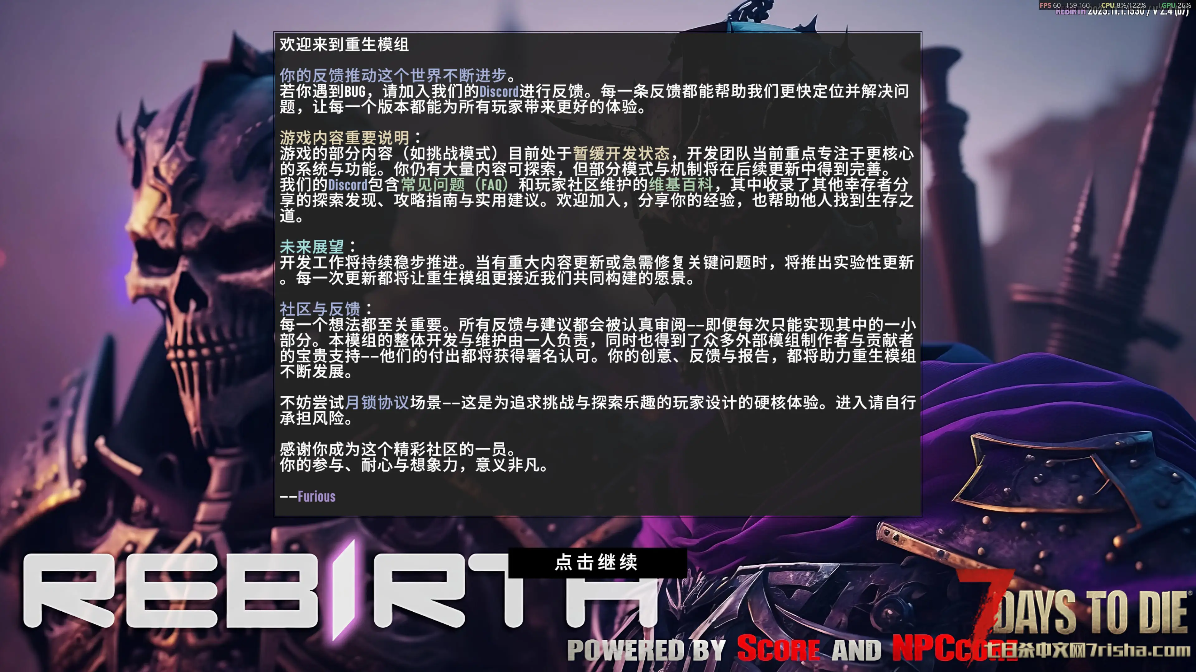 维基百科:https://7d2d-rebirth-mod.fandom.com/wiki/7D2D_Rebirth_Mod_Wiki