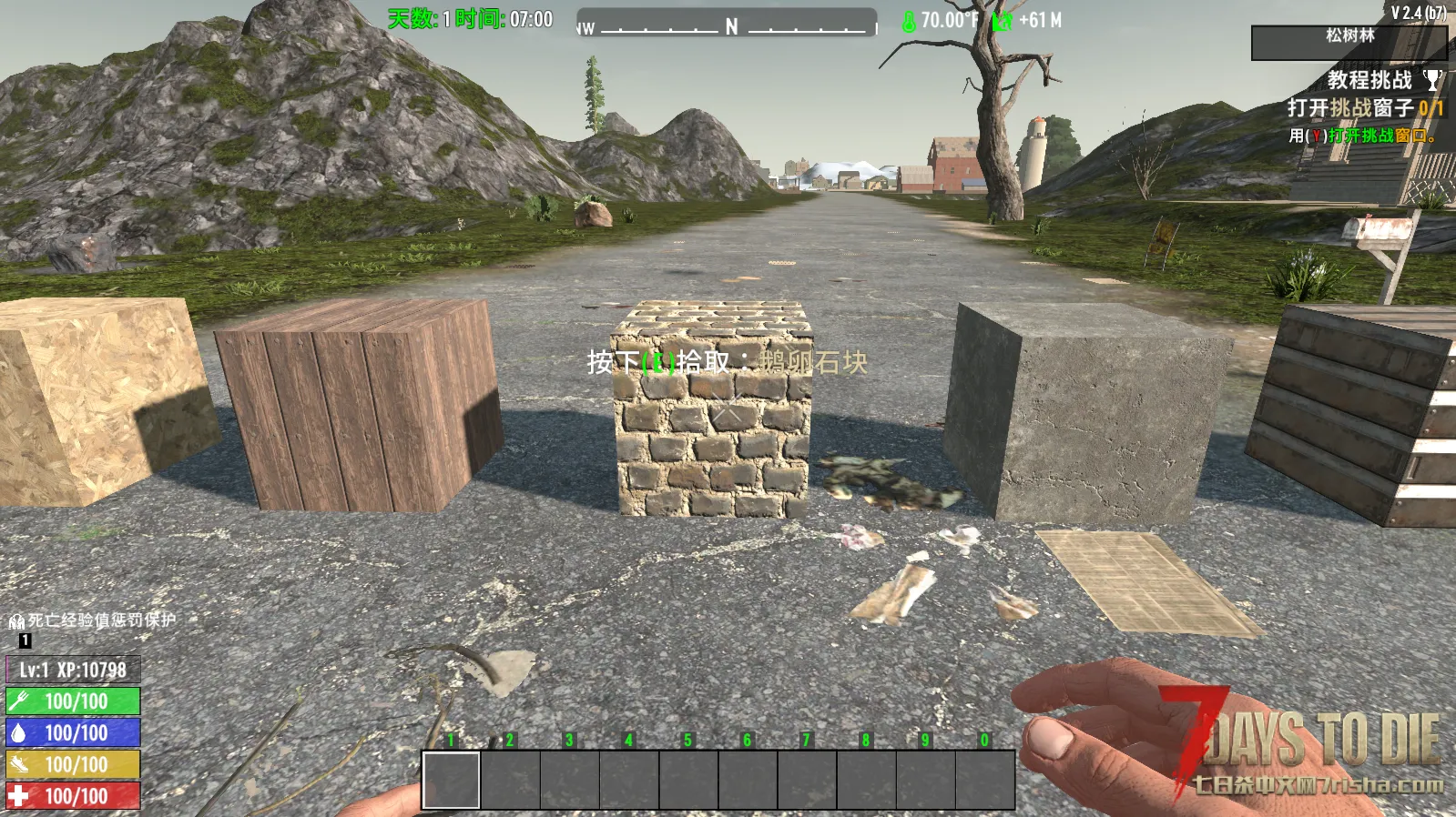 按一下E键就可以回收:建筑块,木块,鹅卵石块,混凝土块和锻钢块。