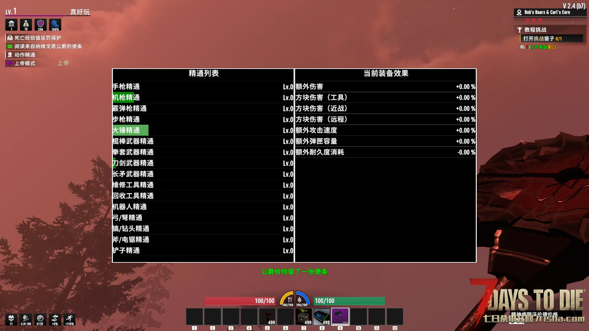 🌾 收割者(THE HARVESTER)核心:农业 + 种植 + 可持续食物 | 任务链:50 个 | 奖励:种子杂志 + 农耕补给初始装备:棒球棍 + 铲子 + 种子 + 自行车 | 适配:想自给自足的生存玩家