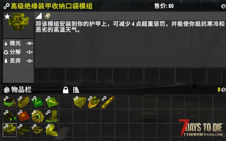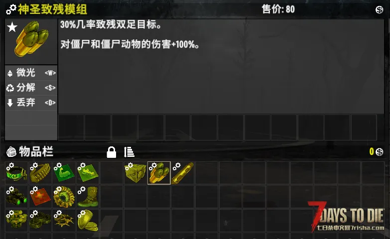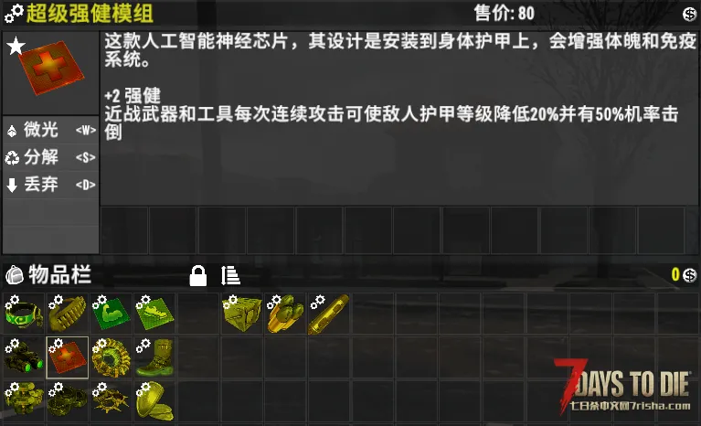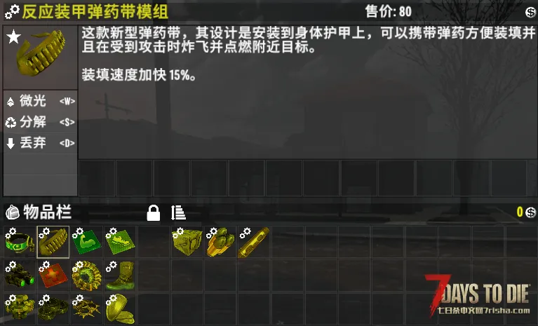 反应装甲弹药模组:被近战攻击和远程攻击时只炸飞身边的僵尸和动物。