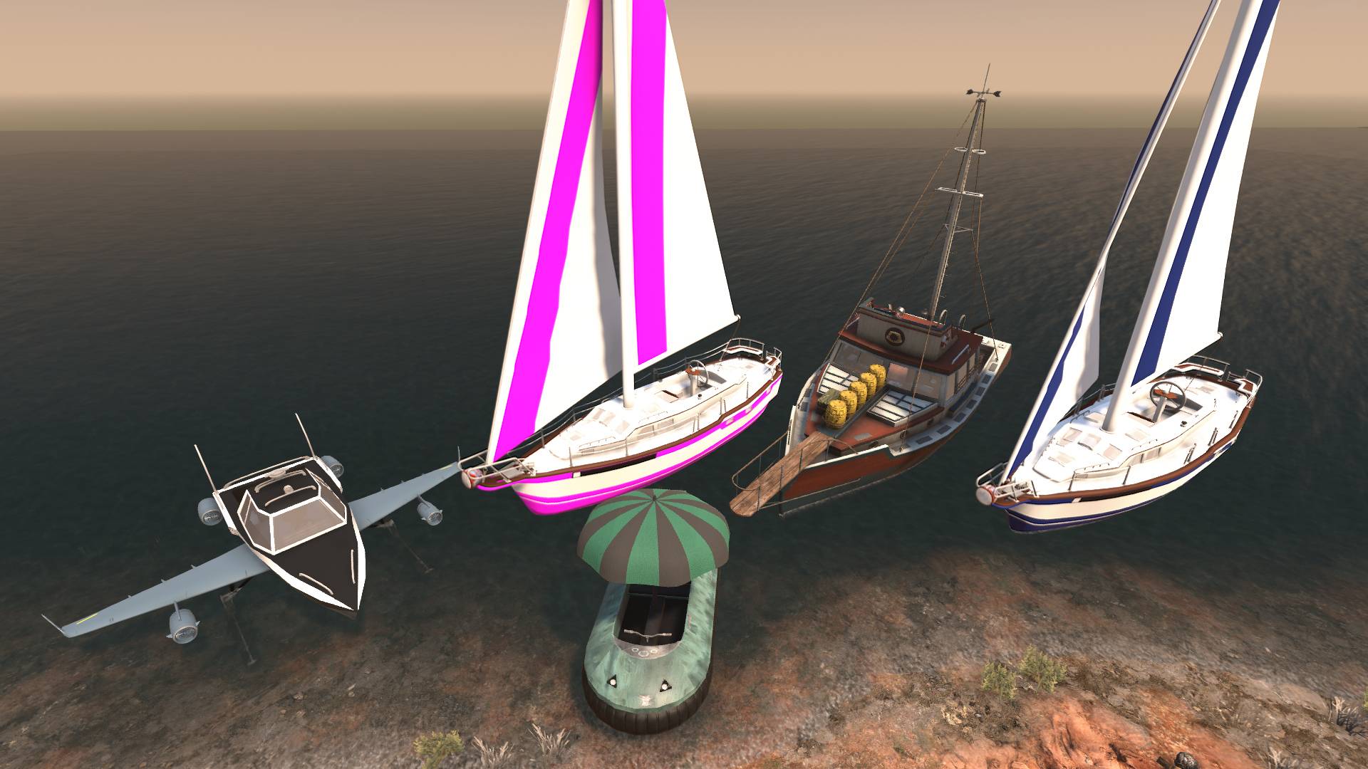 5种独家载具:帆船(蓝色和粉色两种变体)、气垫船、飞艇和虎鲸号