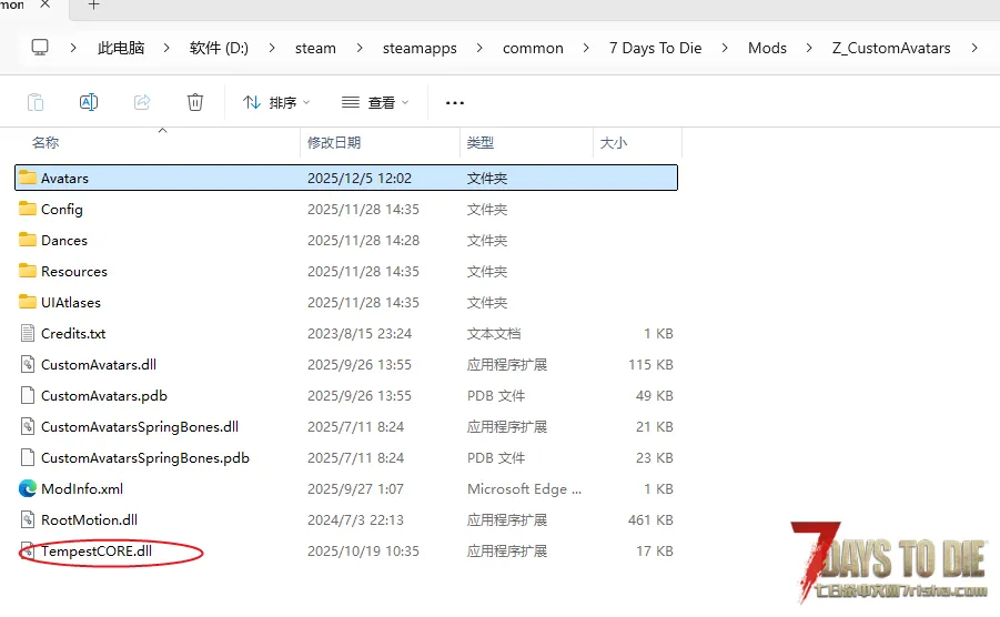 ①将解压包里的TempestCORE.DLL文件放到Z_CustomAvatars文件夹内