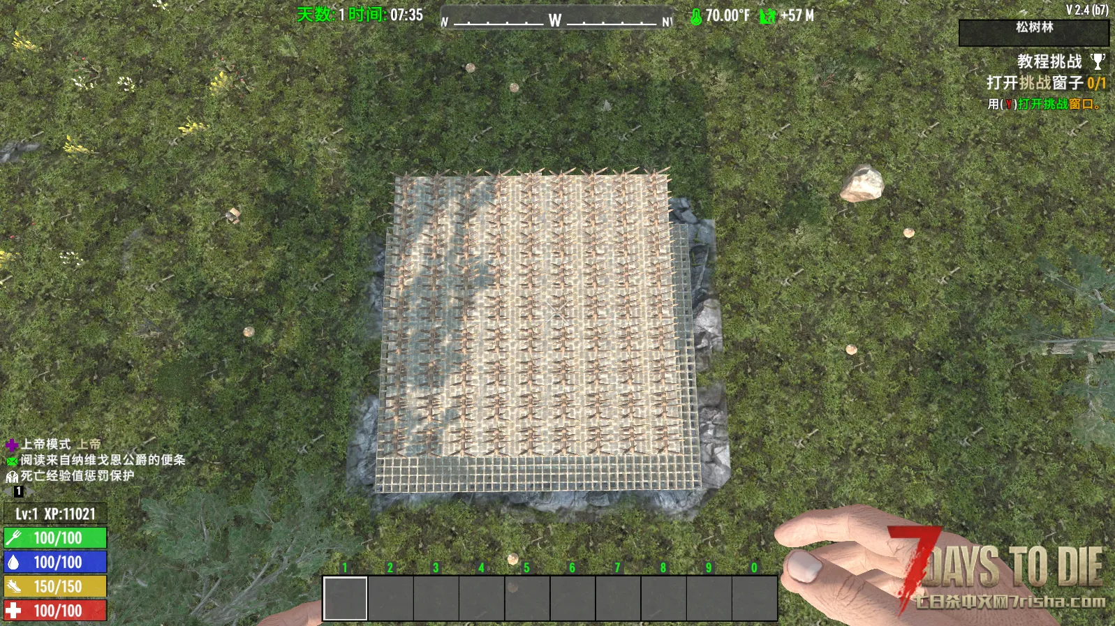 81个木刺陷阱可以防御秃鹫。12个木储物箱和篝火可以用。