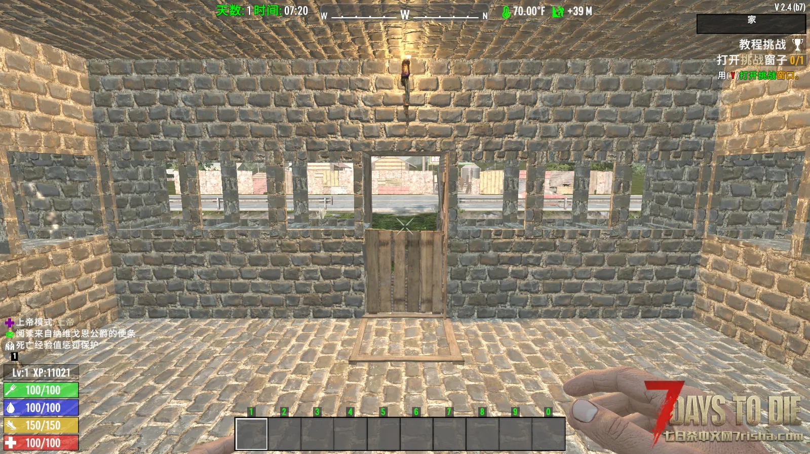 门口打开木门,打开木匣门就是可以供近战防御血月的建筑。记得要勤修理木匣门。