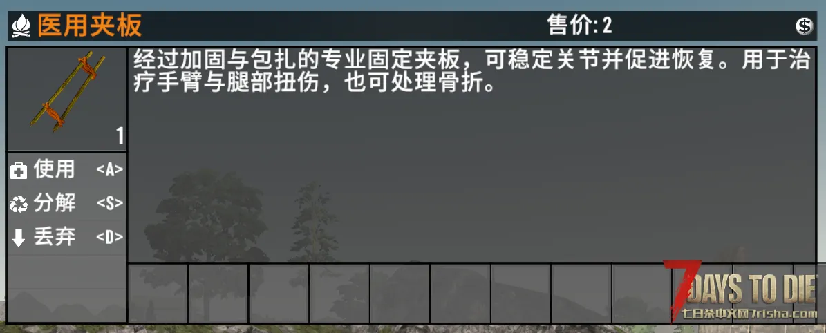高级版的夹板,通过夹板+绷带+胶带合成,用于治疗手脚骨折或者扭伤。