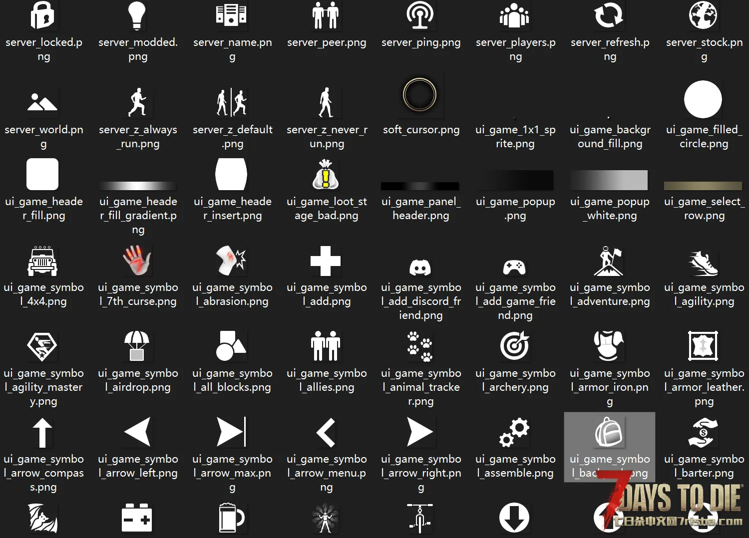 适用于七日杀V2.5的,原生sprite图标导出,带名称和预览,如下图所示:
