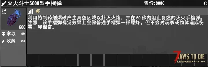 一种在7×7范围内的火灾被击中时扑灭的手榴弹。爆炸效果仅为外观效果(不伤害你、方块或实体)。