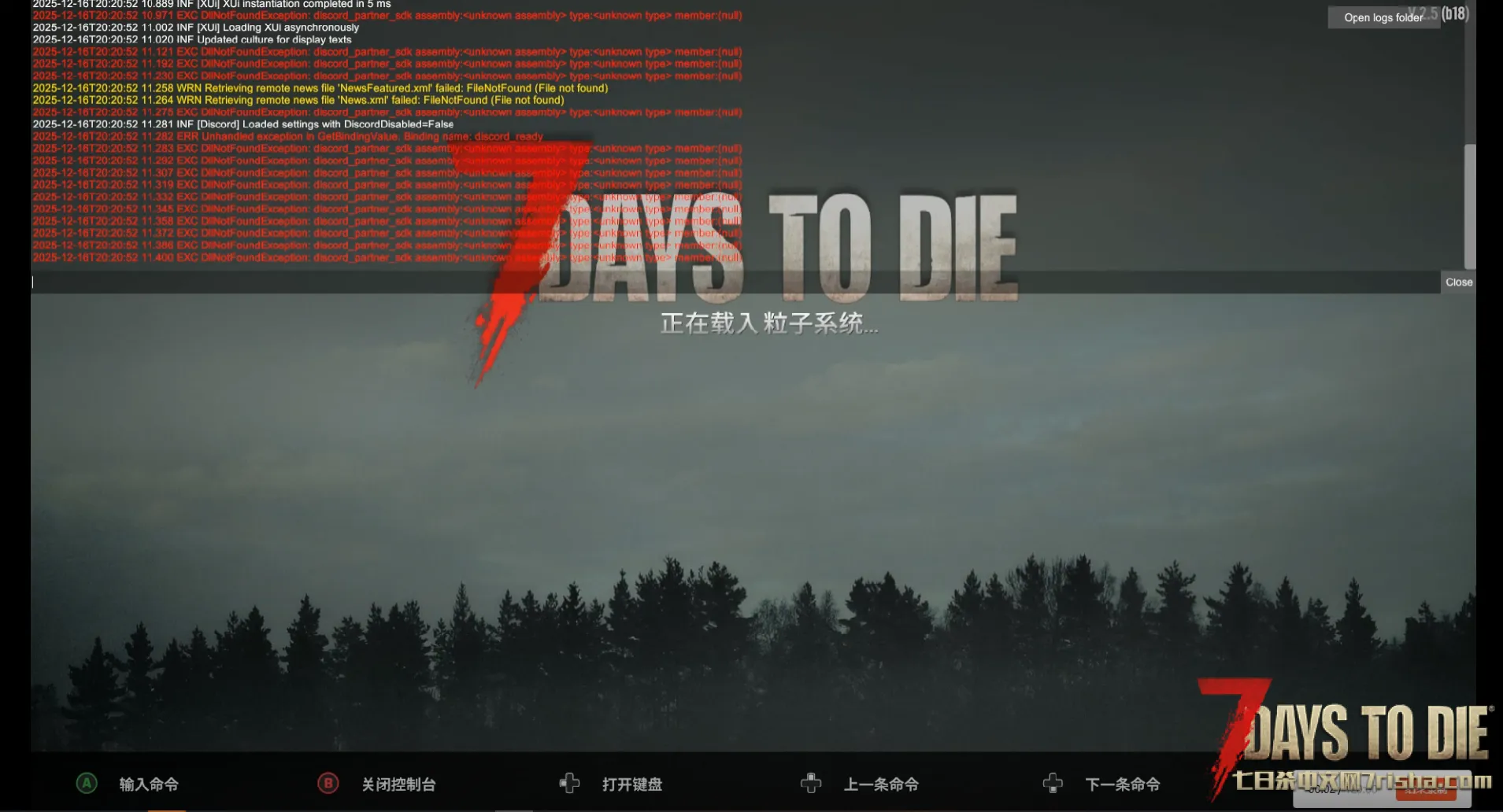 老师们好,七日杀在登录界面弹完加载动画载入粒子系统时会疯狂的滚动红色代码,请问这个要怎么解决