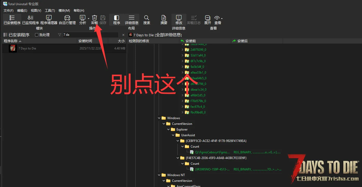 最近有部分粉丝朋友跟我反映,因为七日杀自动更新,导致自己的2.4mod存档炸了,同时Custom Avatars目前并不适配2.5的版本,但是自己手动退回2.4后,却发现人物mod无法通过Alt键切换1-3人称,想要切换视野只能开上帝F5强制切换,但是切换后的人物却一抽一抽的很奇怪,哪怕卸载游戏清空C盘再安装回来也无法解决,其实是注册表的问题,具体懒得说了,跟着我做好