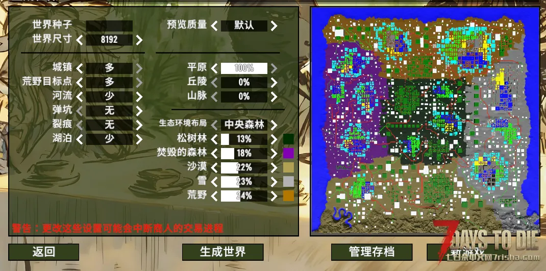 地图大小可选择 平原最好是100 这样不影响城市的概率 且可以配合我上传的cp包一起使用 配置不好的选小地图