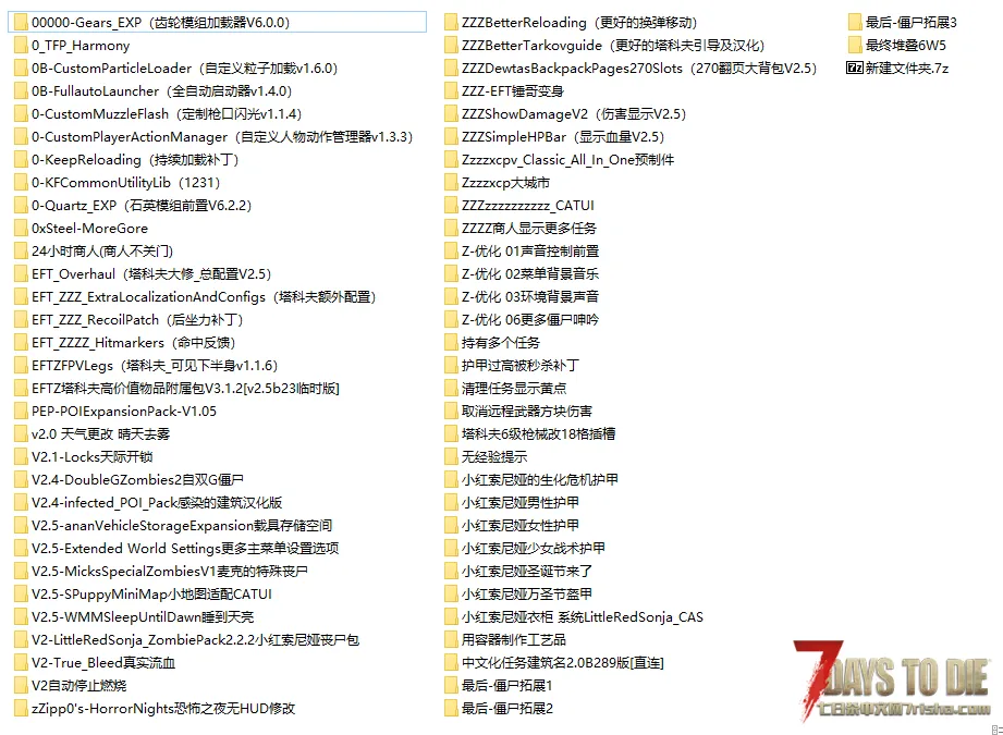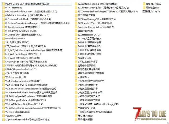 需要最低16G内存 游戏版本2.5 有很多便利的mod如(商人24小时不关门 清理任务显示黄点(妈妈再也不担心我找不到丧尸了) 以及一些丧尸包 还有些比较加氛围的东西)也不用去下载补丁了我都给你们弄好了 下面置顶有个补丁增加难度的 这个整合包首先要感谢阳向渚和莫晓炎 是他们一直在更新的mod 我只是做了一些小小的整合) 他们的群号(941638333) 有什么问题可以随时沟通群里氛围很好的 期待你们的加入