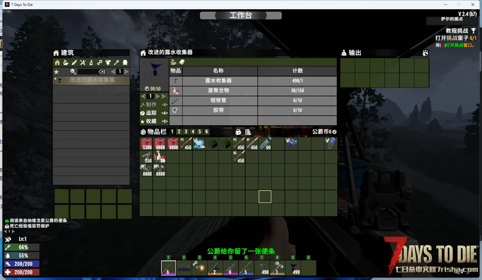 现在改进露水收集器能直接在工作台制作,5倍的收集速度,200的水堆叠,更适合长期出门的朋友们。