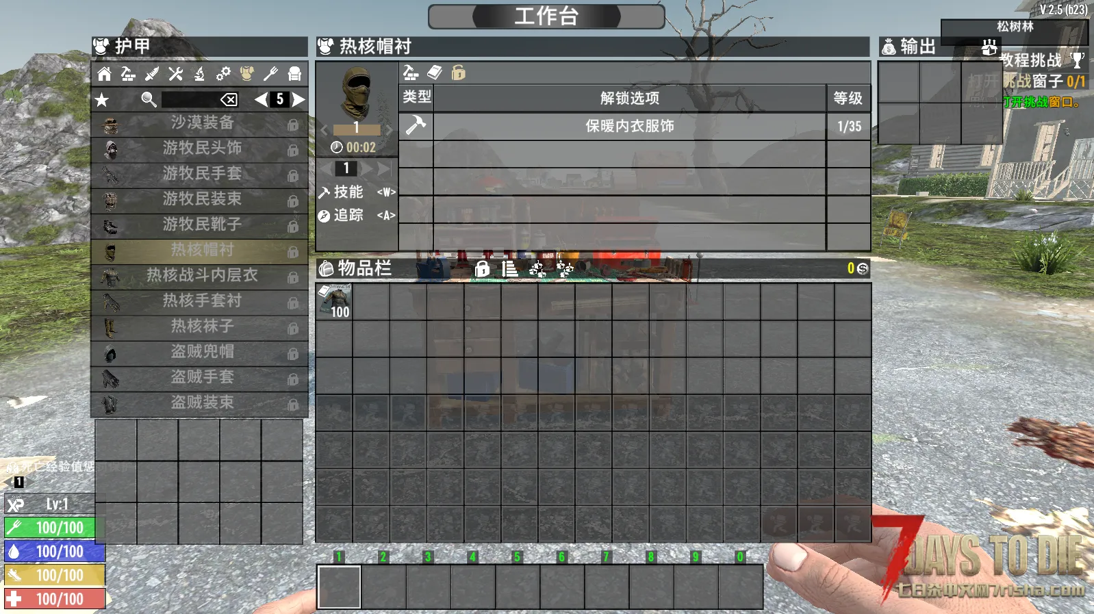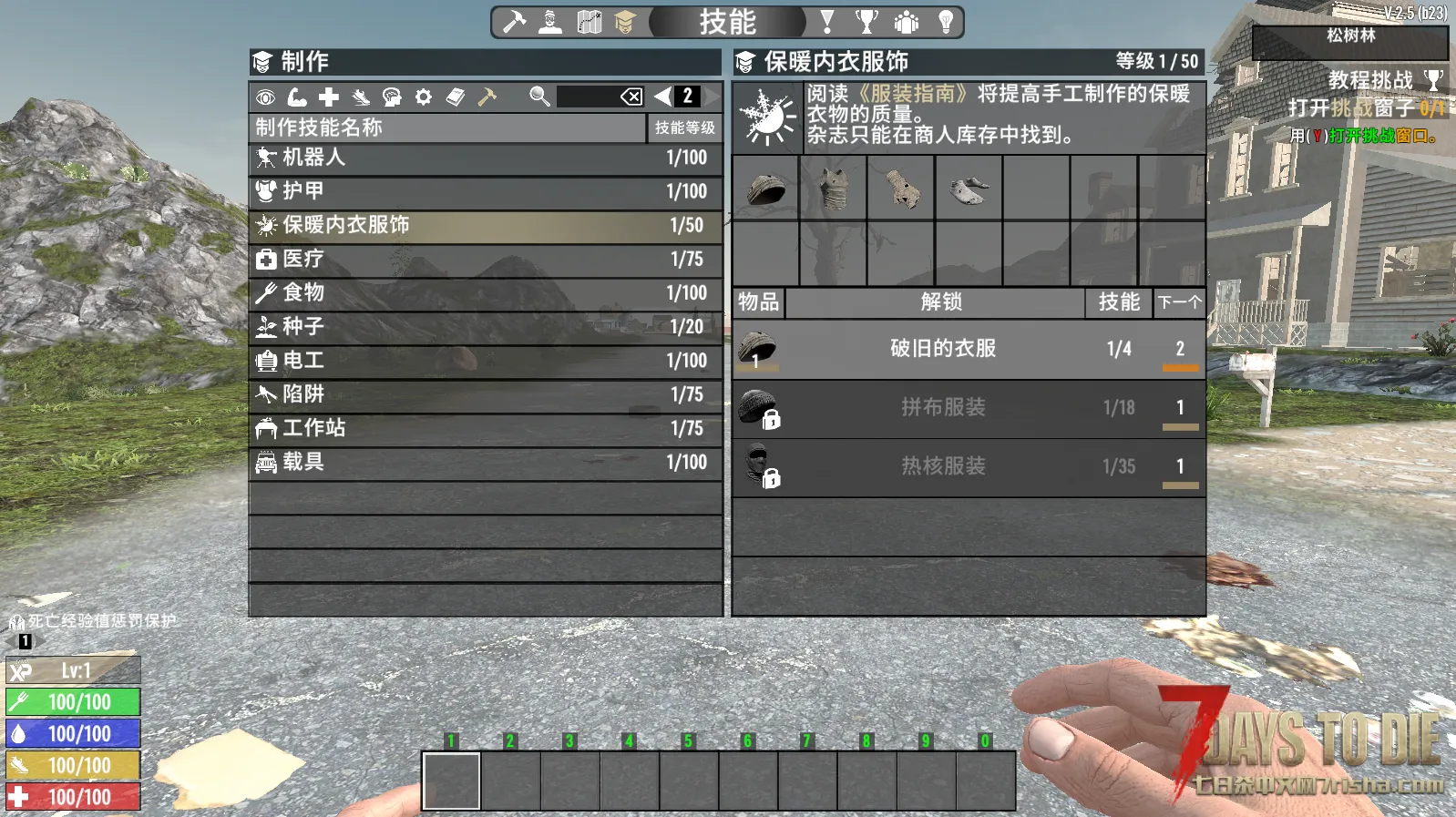 破旧衣服可以在背包里手搓,拼布衣服和热核衣服可以在工作台制作。