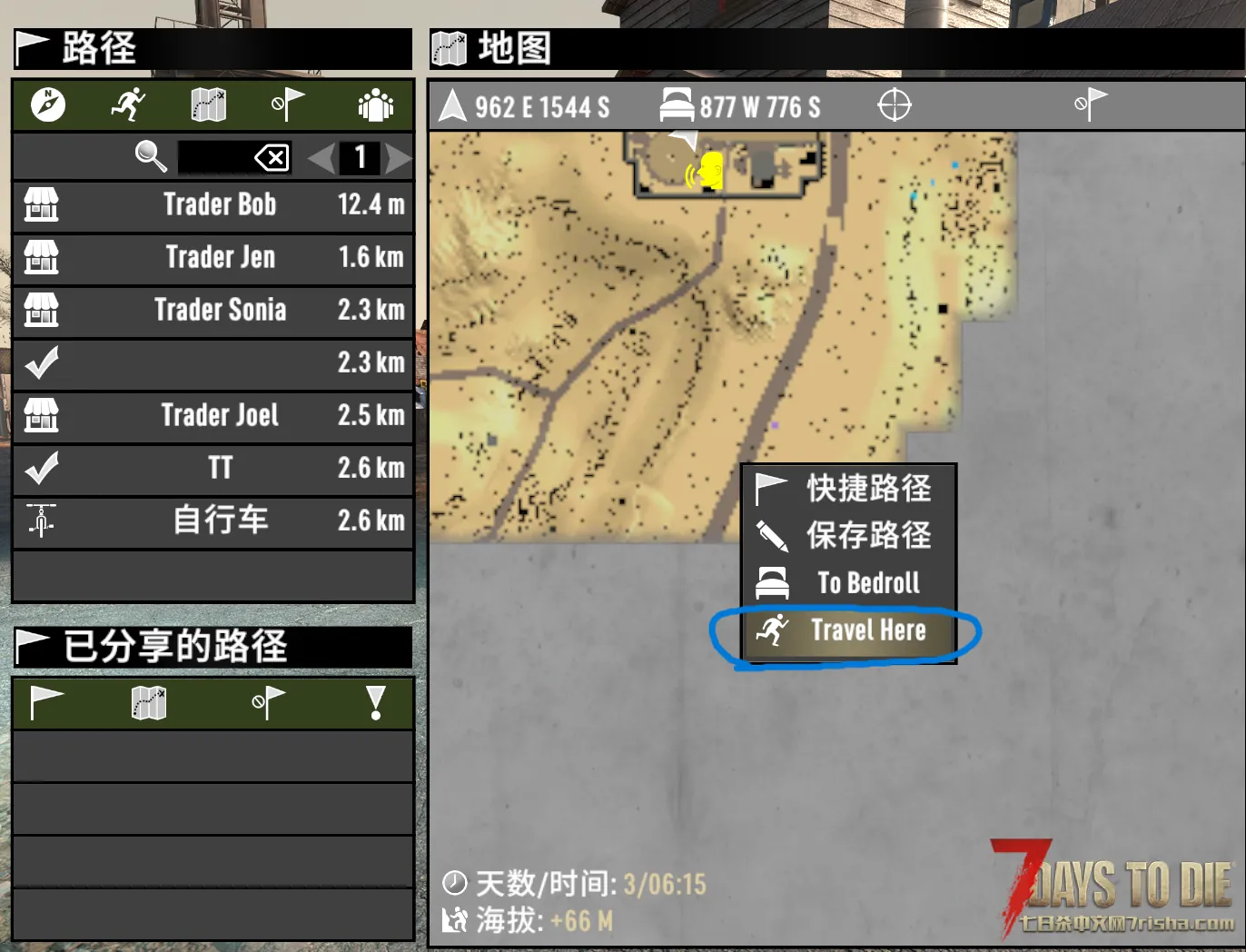 功能1,商人接送服务,使用“Bob's Travel Ticket(鲍勃接送服务卡)”后可以在地图上传送: