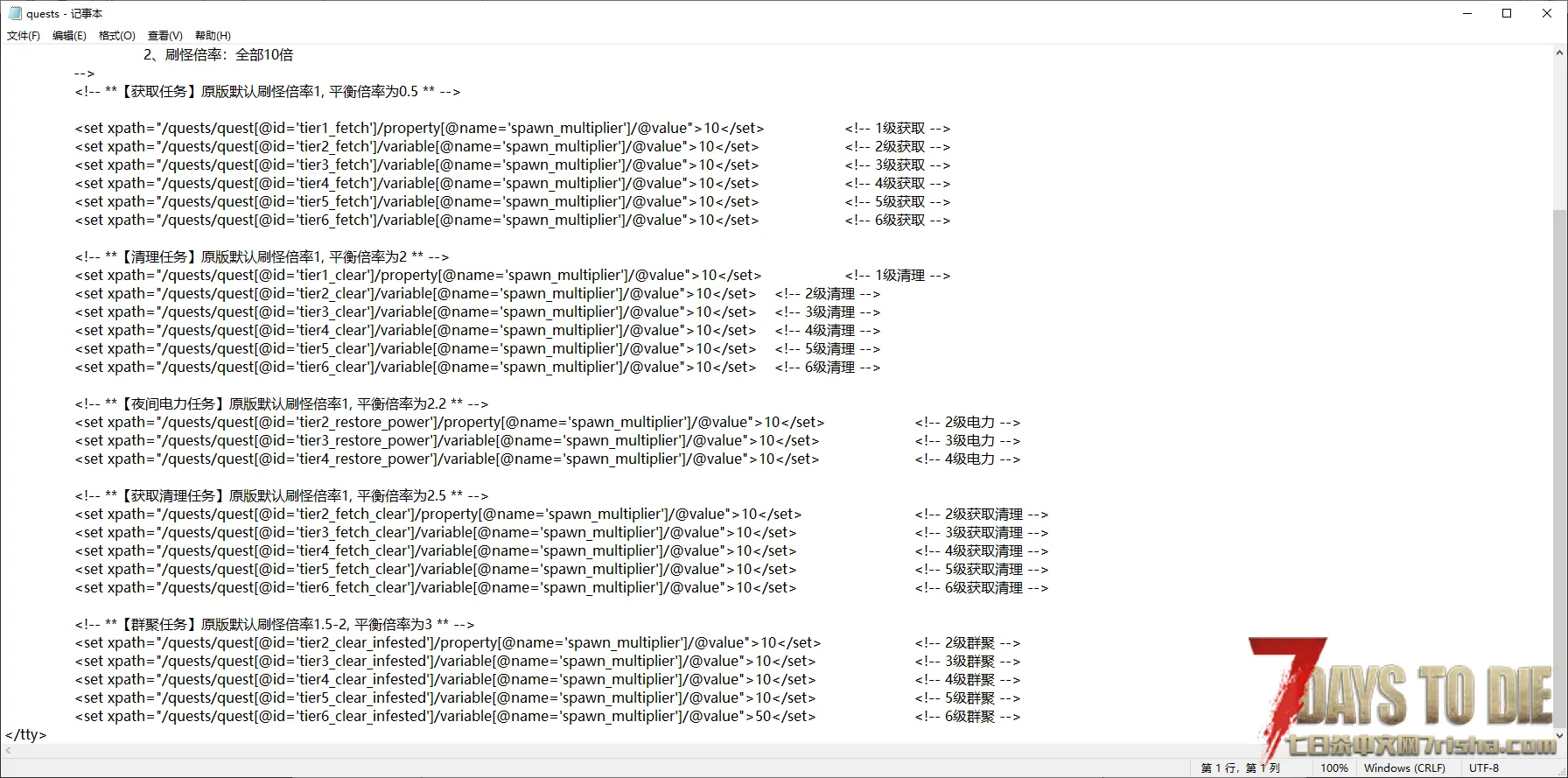 我看了好多帖子都没类似的,或者说很难很难找到,所以发一个方便大家使用。需要几倍就直接改里面的数字,文件内是十倍,顺带一个超级血月,有需要的自取。