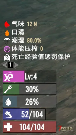 原版食物与水到50以下就会出现饥饿口渴,前期食物获取手段匮乏,不是在饿的路上就是在饿的路上,对于我这种菜鸟来说三天饿九顿是常态。明明还有一半的食物与水却告诉我口渴饥饿,额不理解