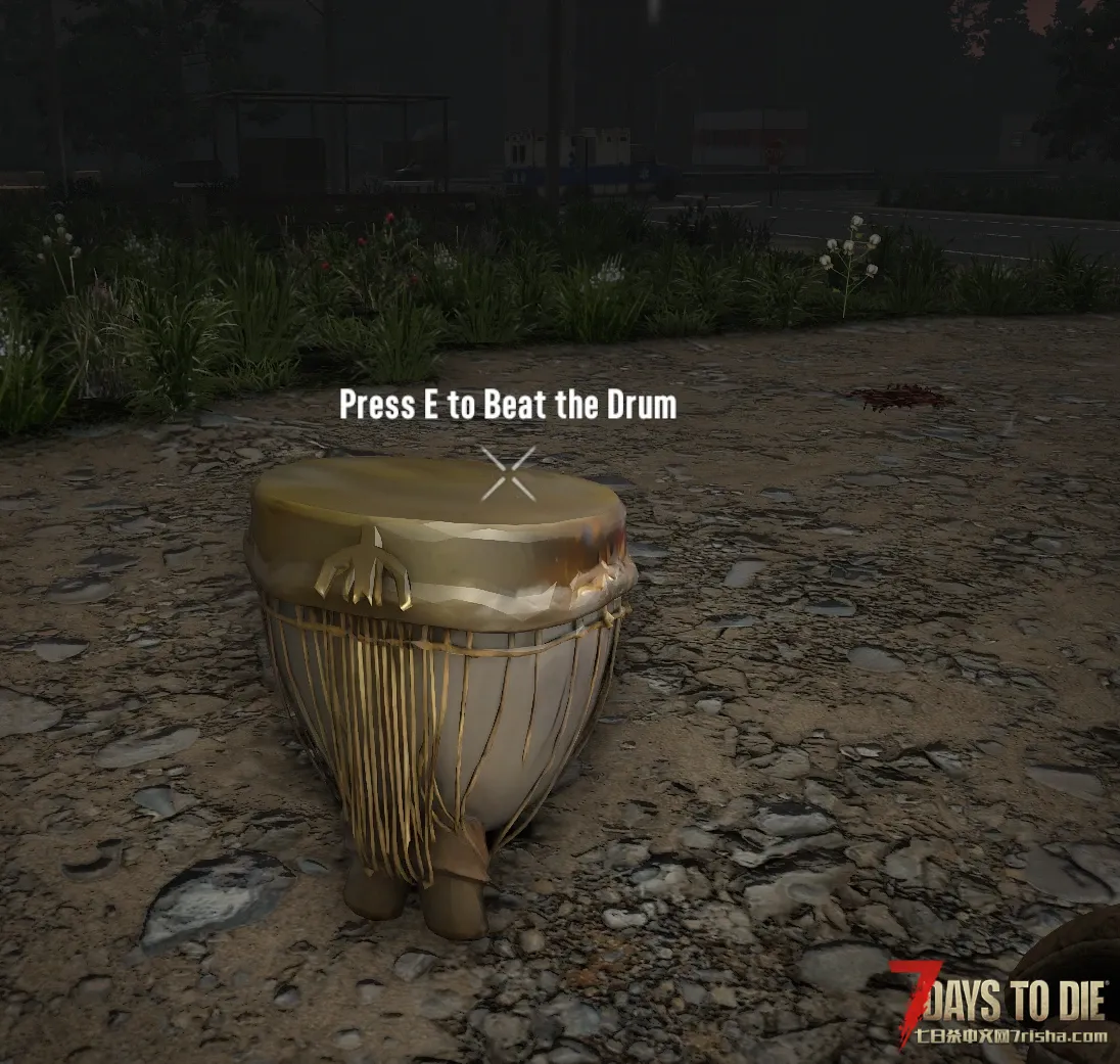 放置战鼓后按 E / 用近战武器敲击,会识别当前 POI 并唤醒所有沉睡僵尸,且强制僵尸主动追杀你(不再蹲角落划水)。