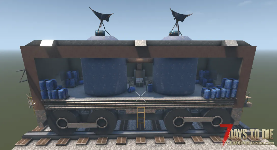 部件2:末日列车-空置车厢与铁轨(含 车架子和铁轨,另有两种无内部装饰的车厢, 可以凭喜好添置内容)