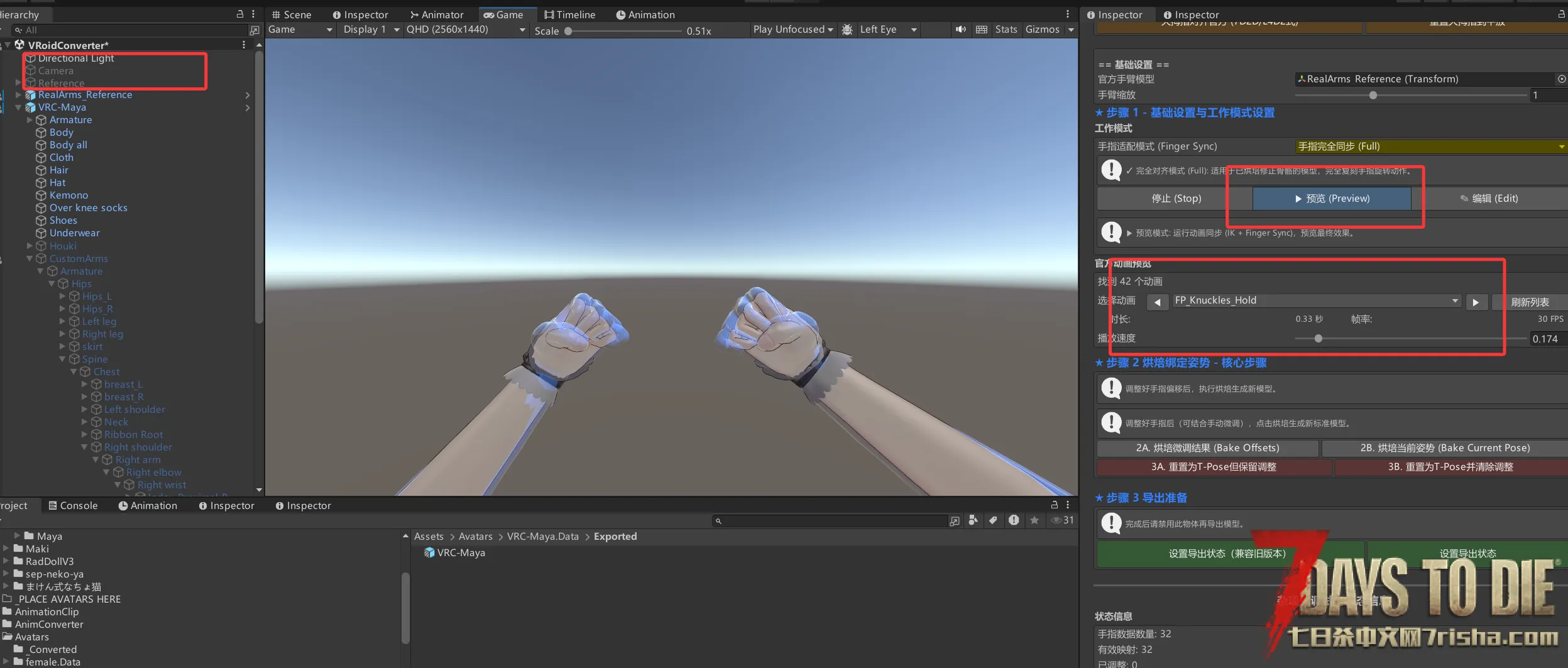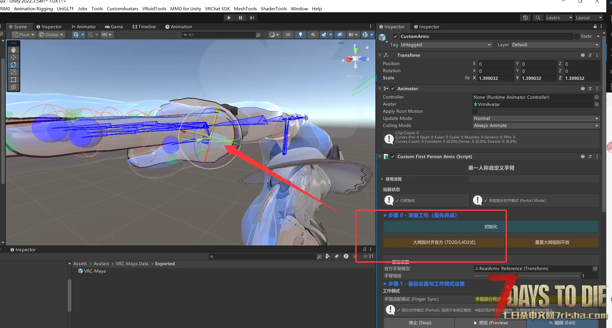 先参考https://www.7risha.com/84977.html 做到:即将导出,需要对手臂微调的这一步。