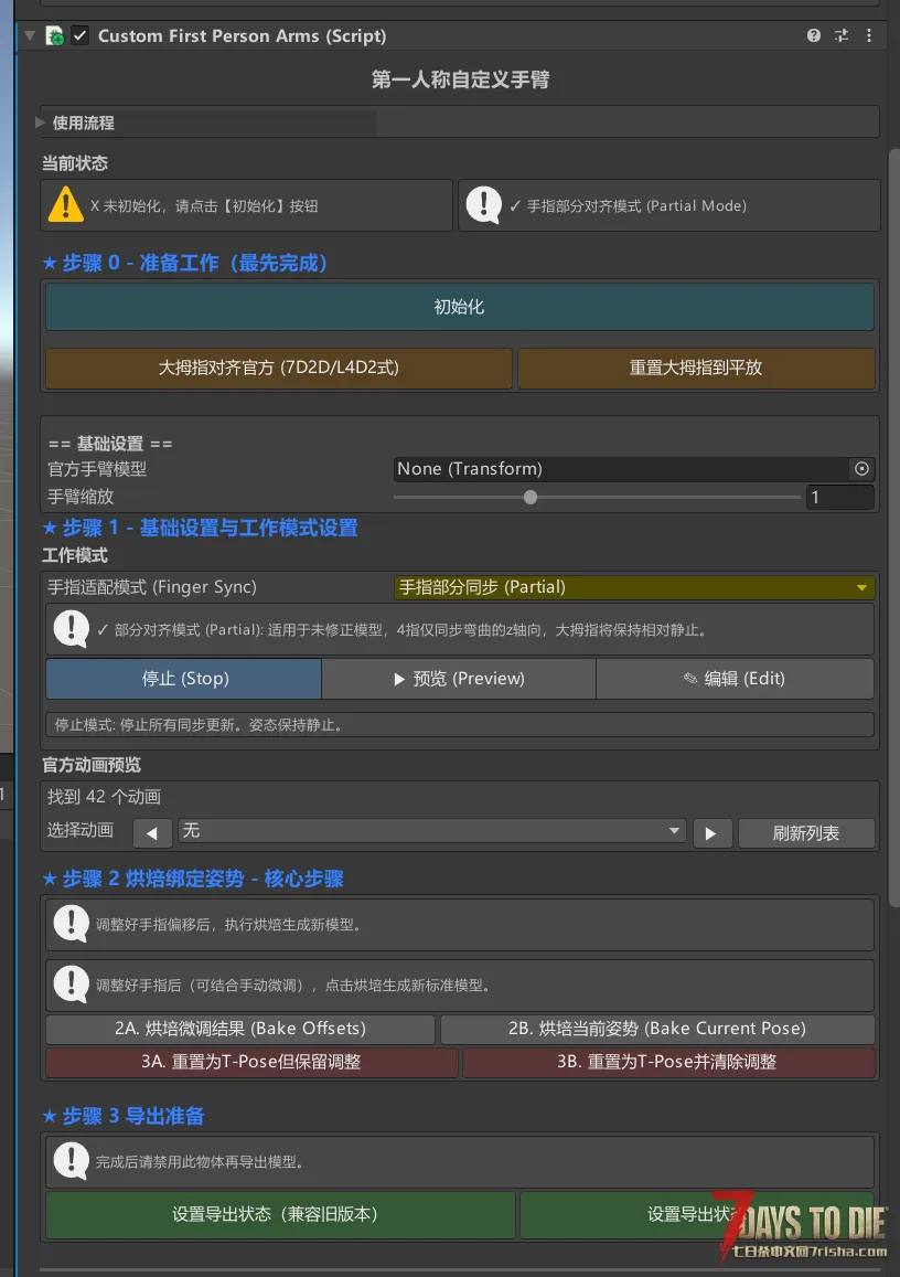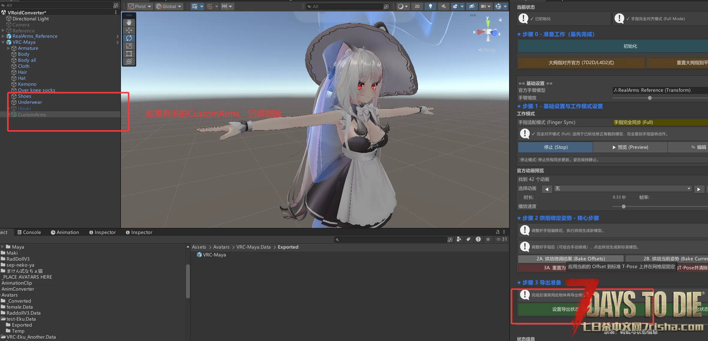 这里没什么问题就可以点击步骤三的 设置为导出状态按钮,,然后把CustomArms禁用,然后就可以导出了
