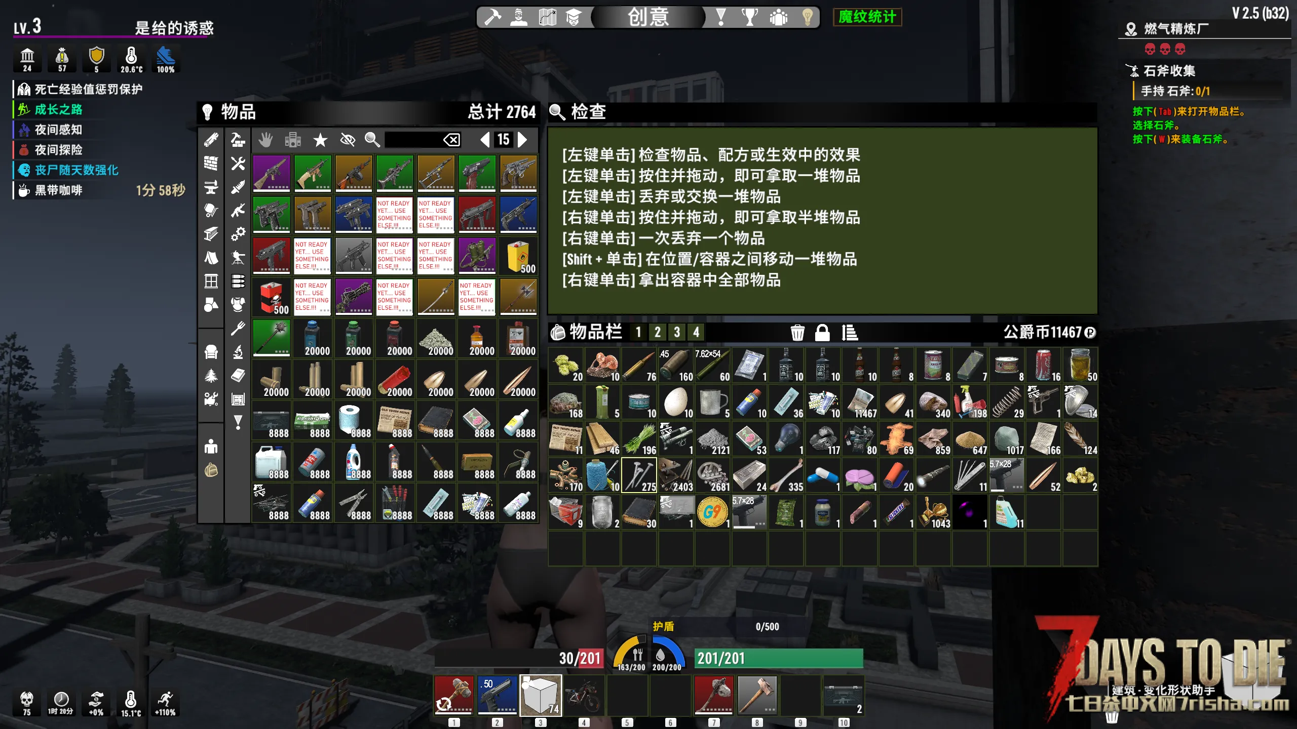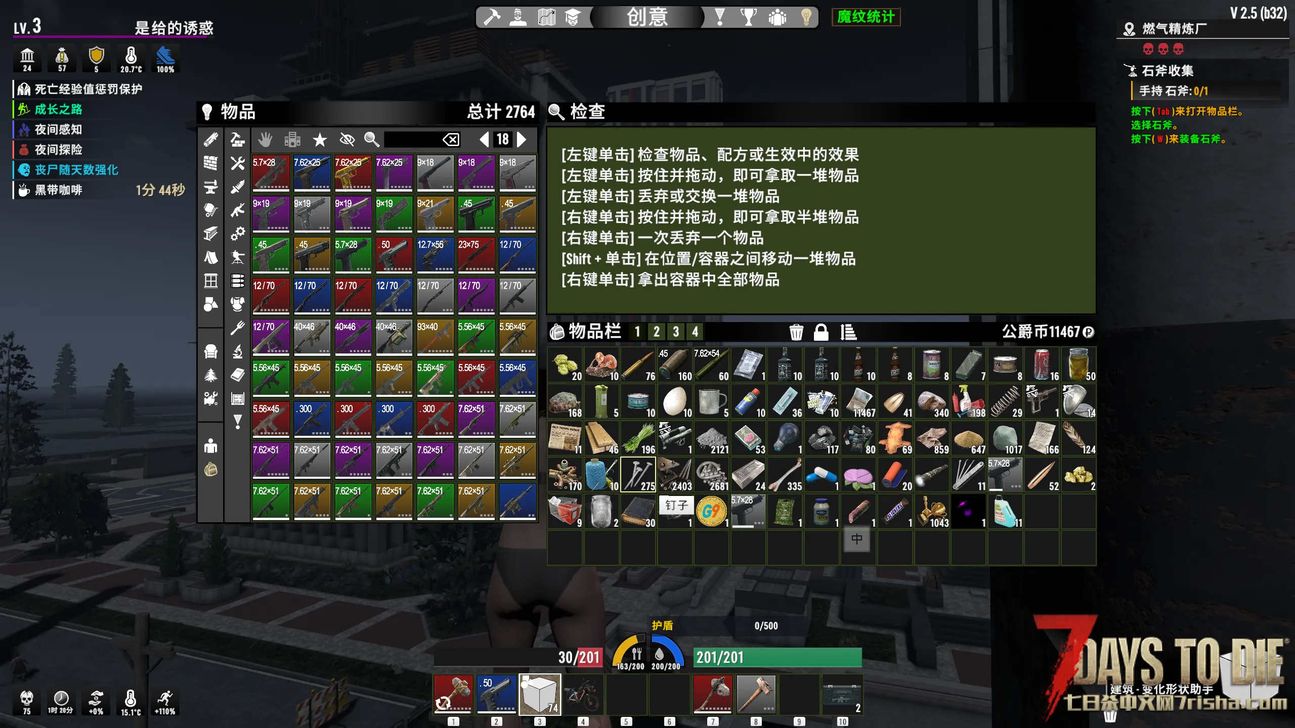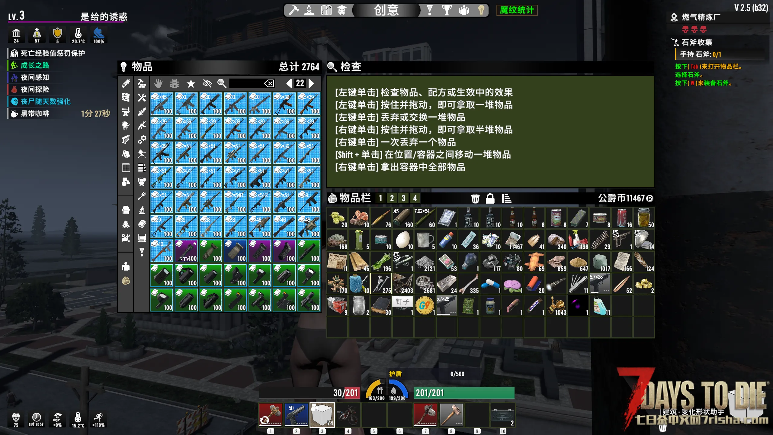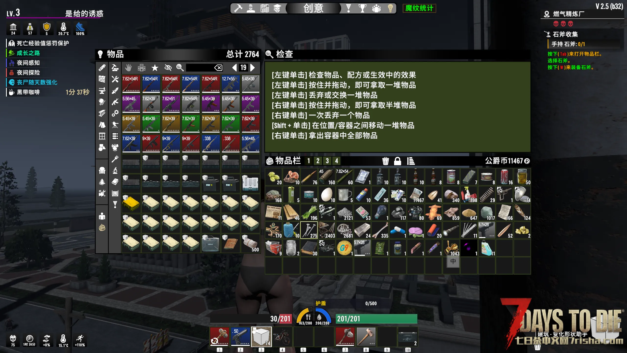 里面有模组兼容mod,比如武器能放头灯,只要有孔的物品都能放游戏里的模组。