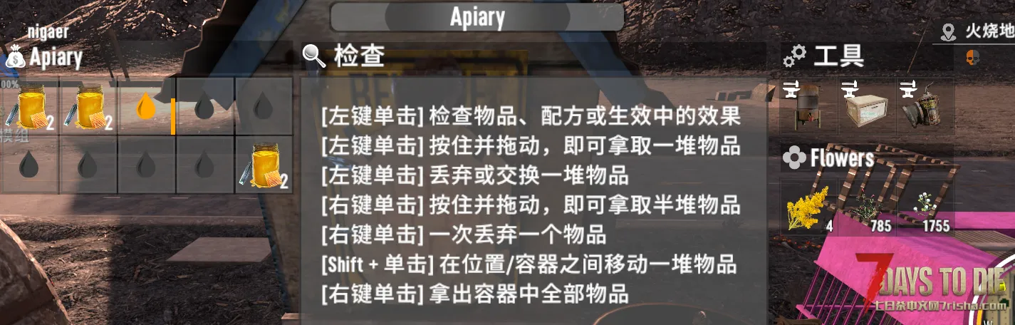 我在烧毁的森林区域放了两个蜂房,结果好几天过去了一滴蜂蜜也没产出来,永远显示是空的