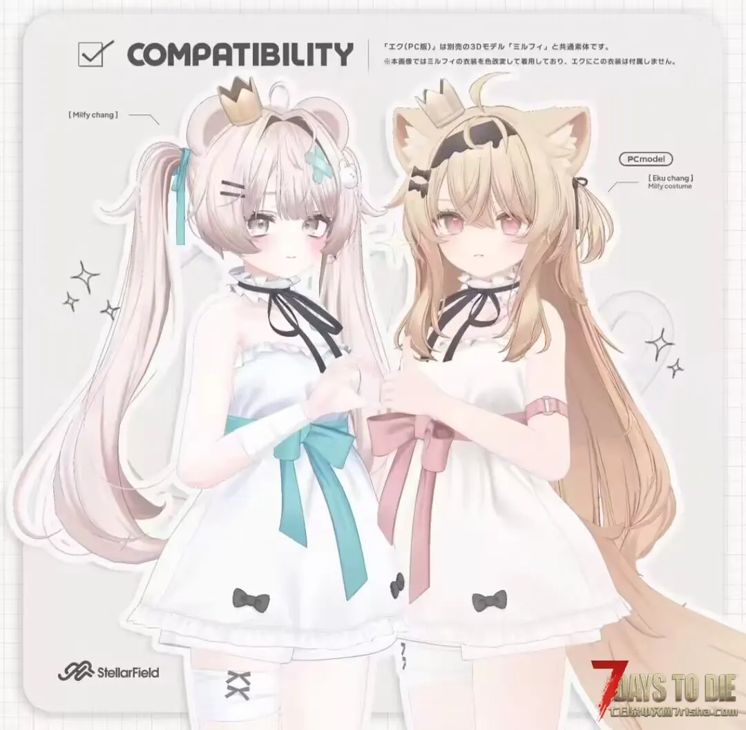 嘻嘻,摸了半个月的鱼好爽,这次重置了化学站,使用了牛妹,米露菲以及她妹妹意可蕾,同时为了照顾部分兄弟的XP,三人分别是黑丝,白丝和裸腿,丝袜稍微修改了一下弄了那种微微透肉的效果,动作方面依然是手搓,毕竟确实没什么可以直接套用的数据,这次特意给意可蕾姐妹买了个”福”装上,我逛booth时发现牛妹的”福”款式是真的多啊,反观其他角色就比较少了(有一说一牛妹确实涩),下一次重置的是锻造炉,大体方案已经想好了,等有时间在搞搞