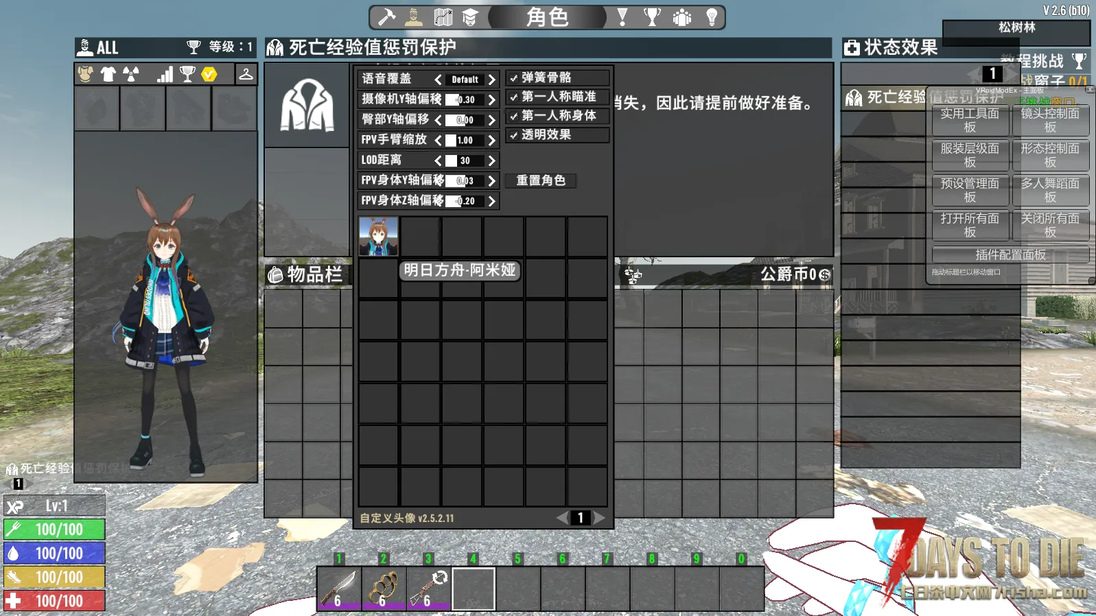 霜星的第一人称手臂不想要被遮挡,可以使用Alpha插件的服装层级面板关闭外套。