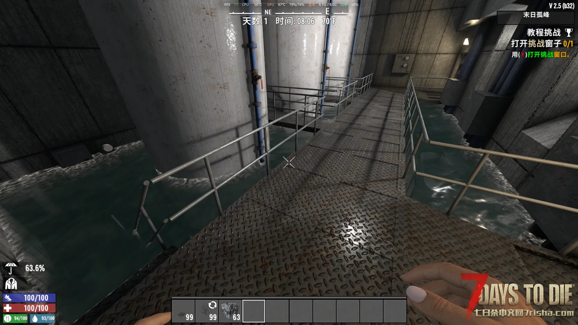 找到进水的地方用先用物块封住。用建筑块把有水的地方填满再捡起来水会消失,犄角旮旯放不了物块的地方用水桶手动把水舀走。