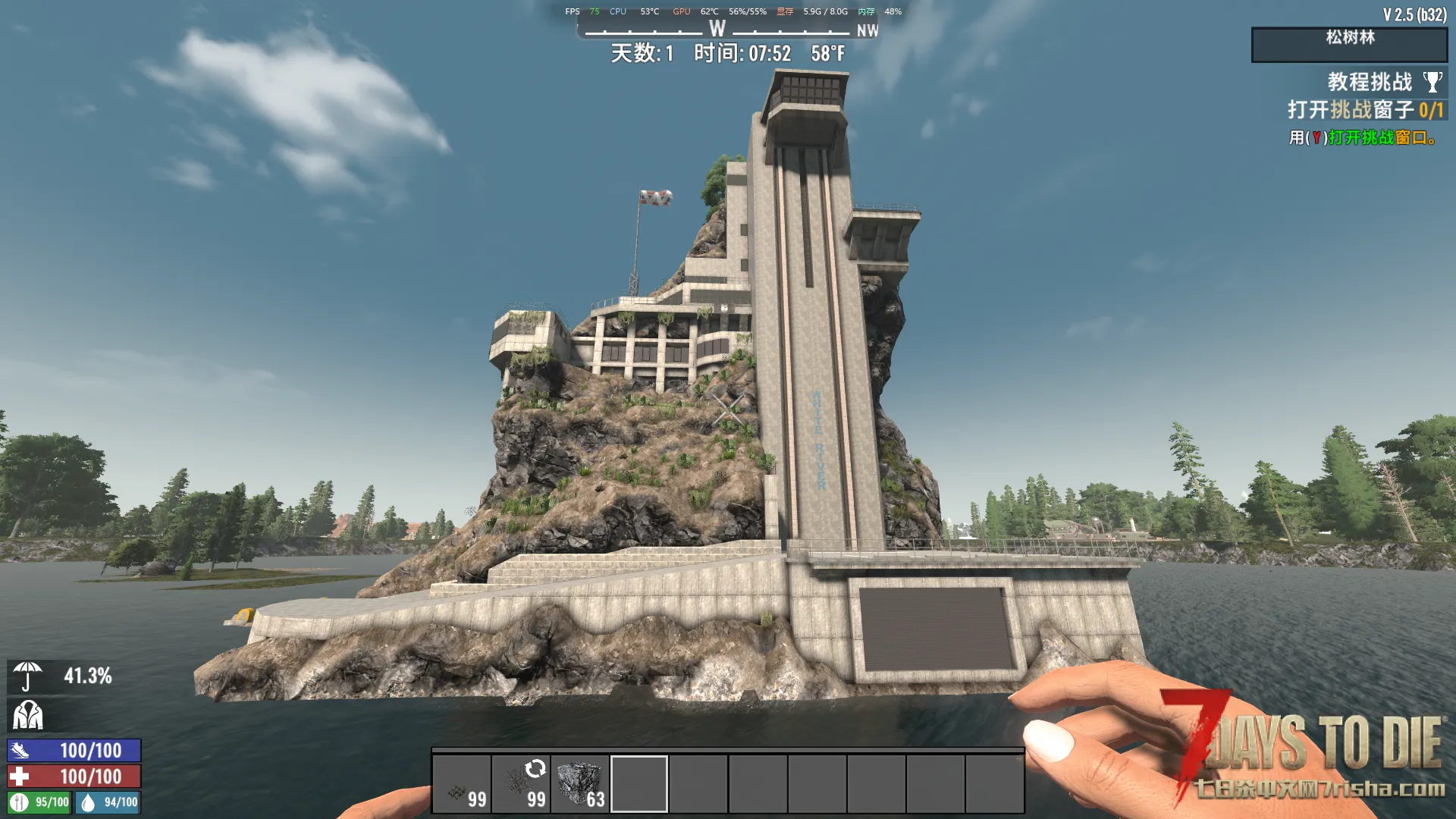 如图,这是一个岛屿建筑,下面有一个内嵌式码头的结构,放入地图水里以后 外面看没什么问题,但是最下面的建筑内部也会有水…………。