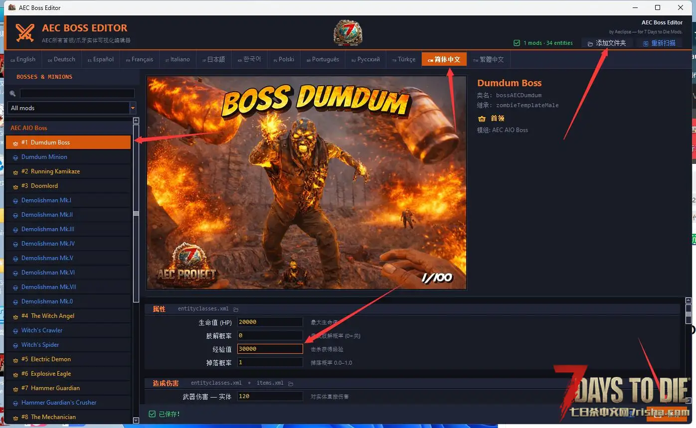 1将自定义编辑器解压后和超级首领V2.5模组一起放到MODS文件夹