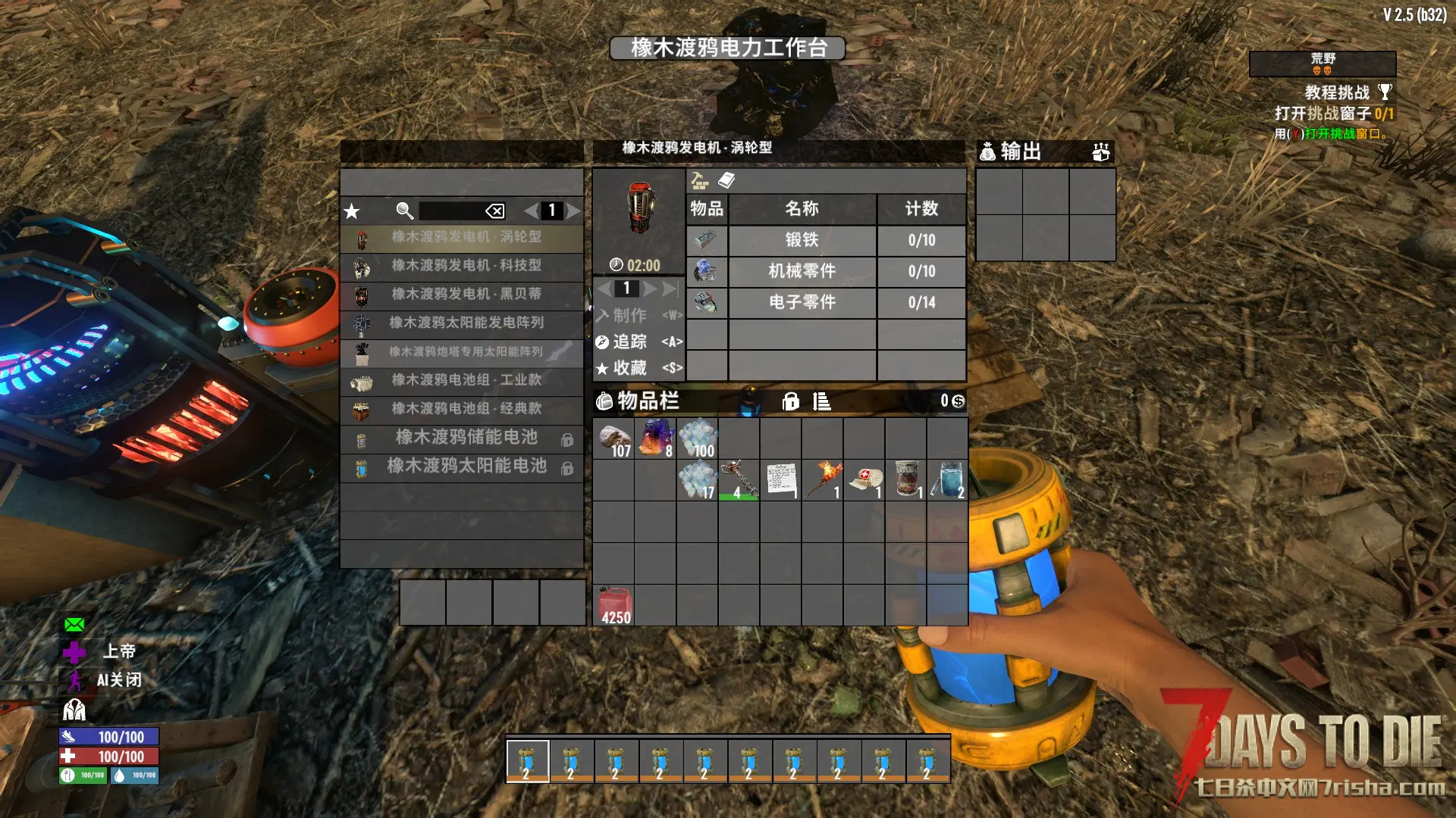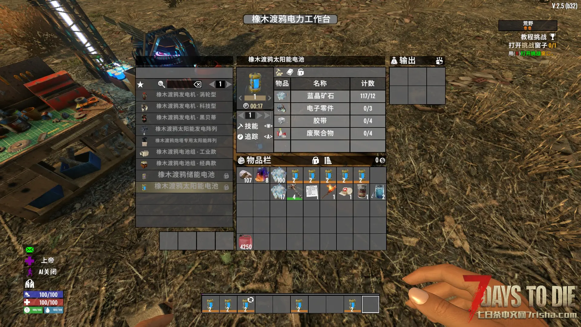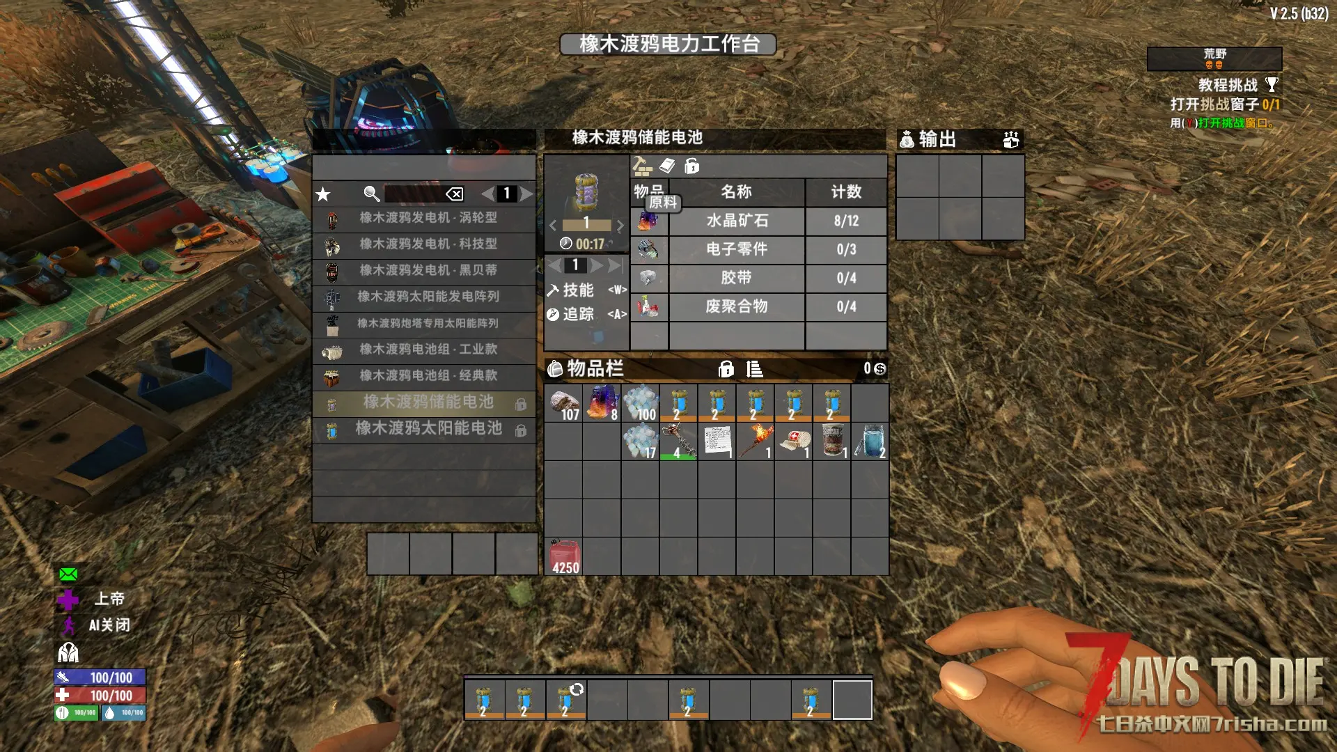 多级电力组件制作:可在橡树渡鸦电力工作台上,制作Q1至Q6等级的能量电池和太阳能电池,满足不同阶段电力供给需求