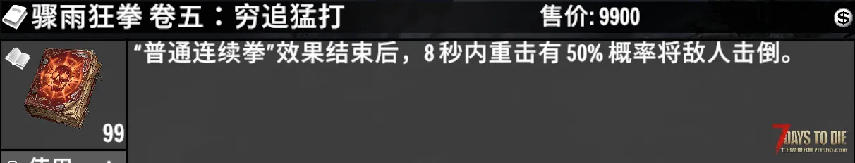 介绍:“普通连续拳”效果结束后,8 秒内重击有 50% 概率将敌人击倒