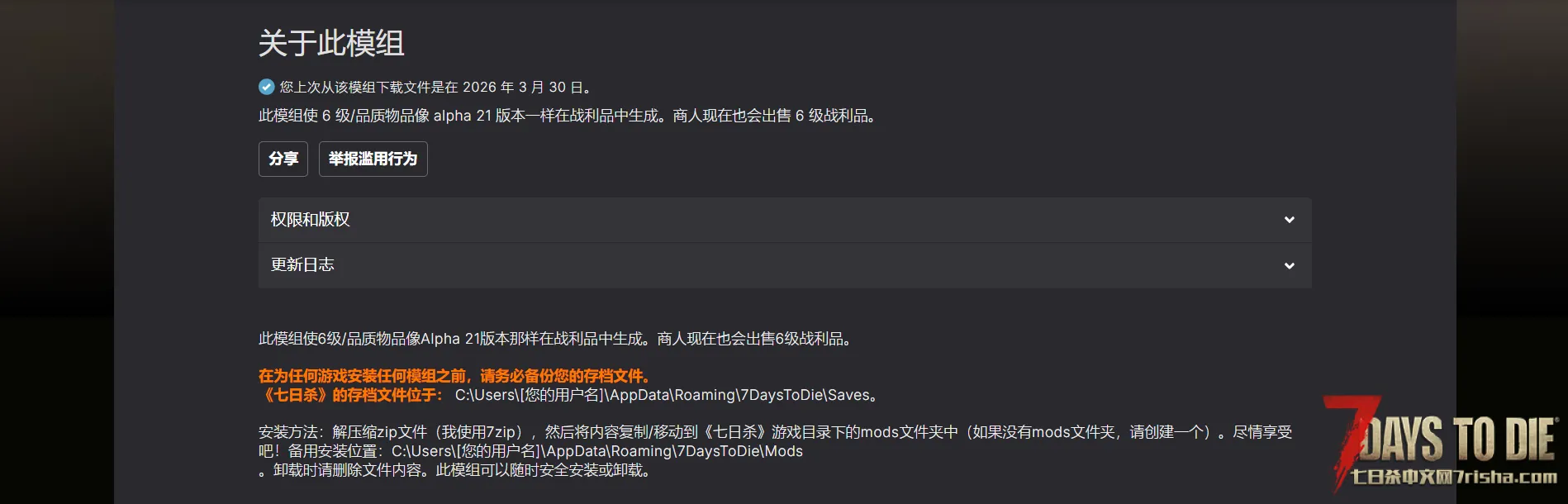 此模组可以使6级品质物品,像A21版本那样出现在战利品里,商人现在也会出售6品的商品。