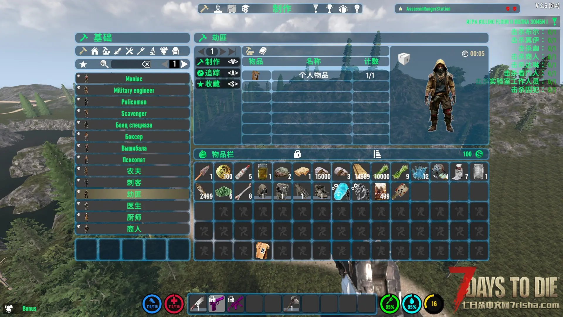 25个独特的玩家职业:在交易者的入门任务之后,选择一个末世前的背景(例如,汽车修理工、刺客、医生、狙击手、农民等)。