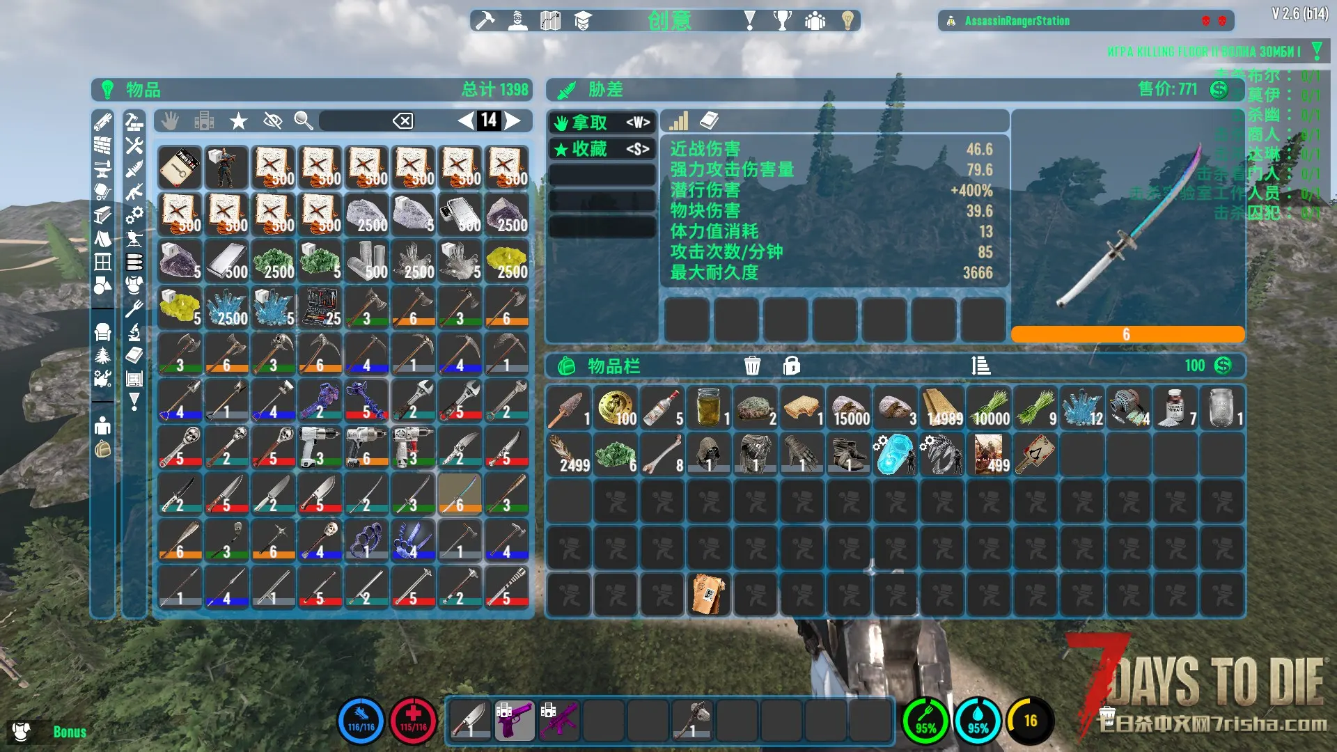 钛制工具和武器:更耐用、更高效、更强大。某些武器的特殊奖励(例如,拐杖糖、增加弹匣容量的AK47)。