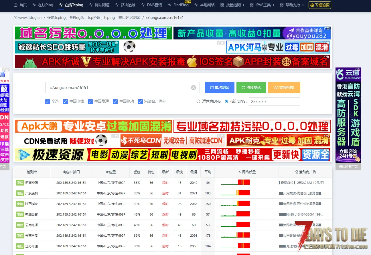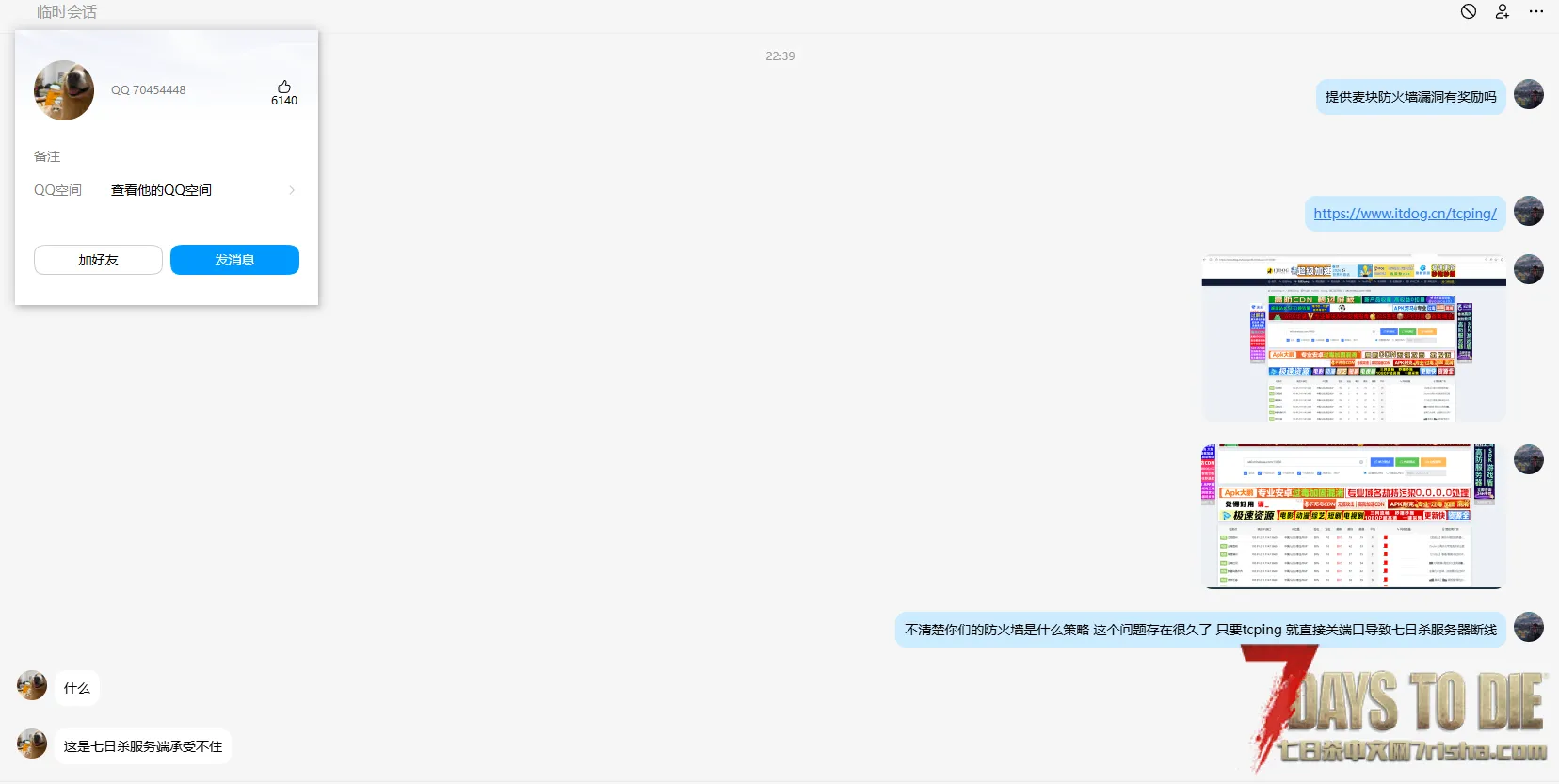 只要通过在线tcping 麦块服务器的端口 就会导致麦块防火墙关闭(麦块技术员说是七日杀服务端承受不住)