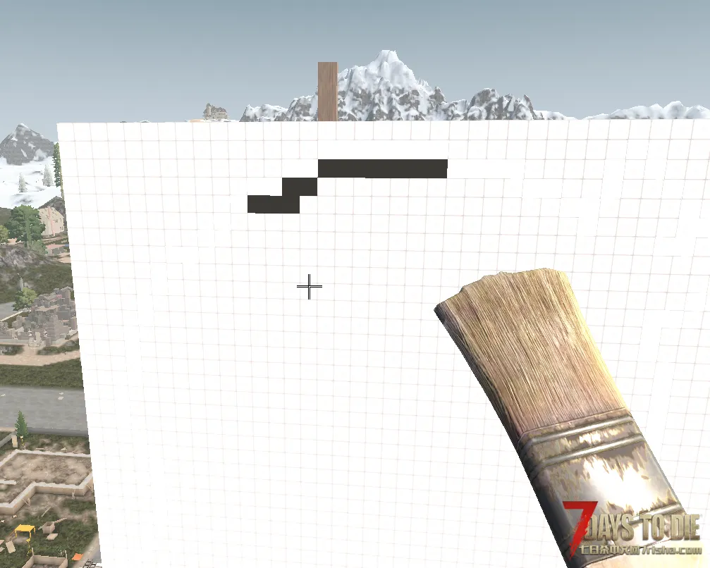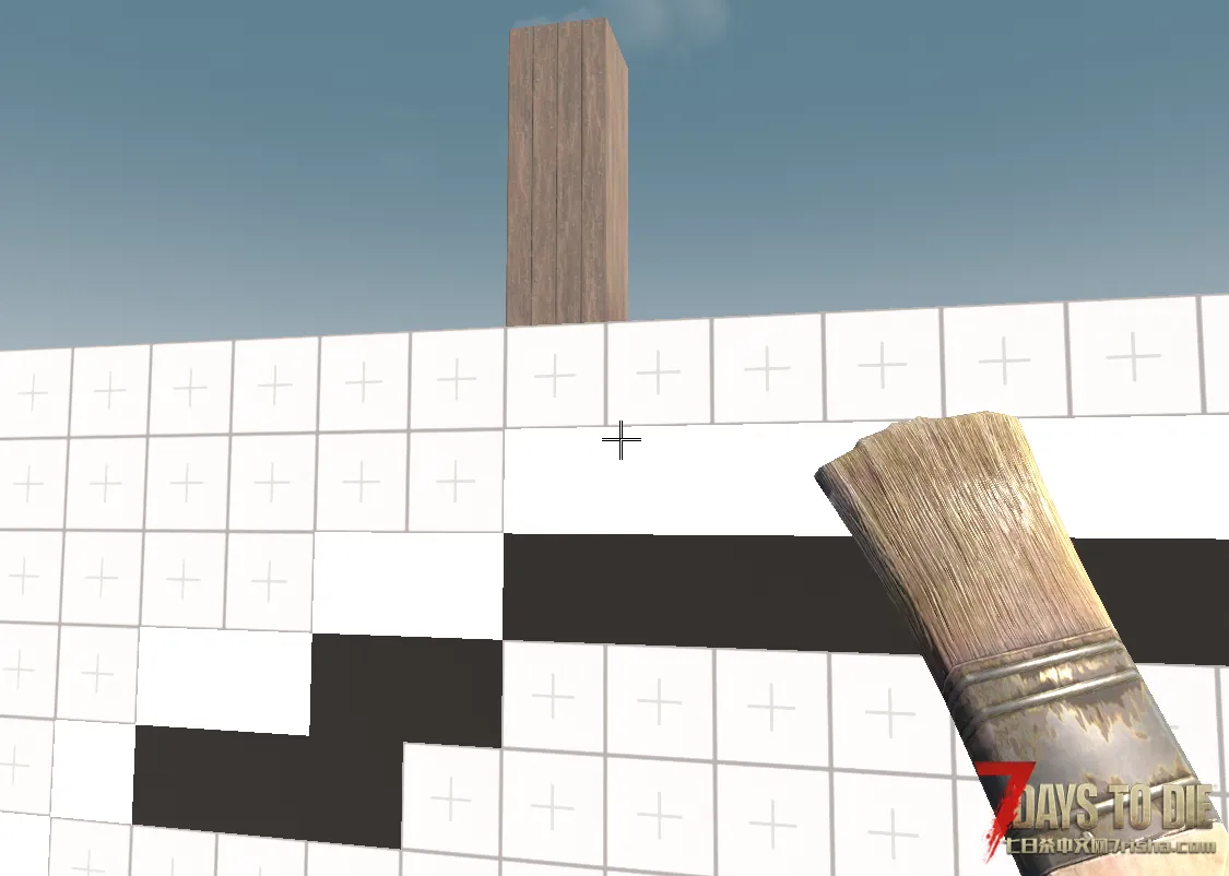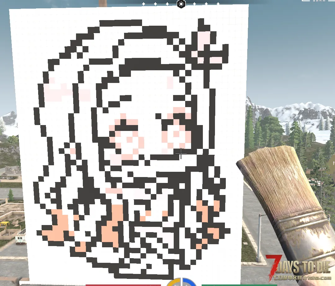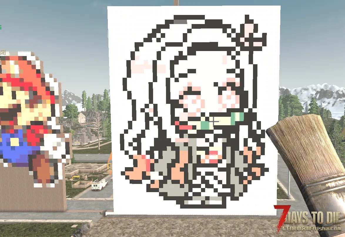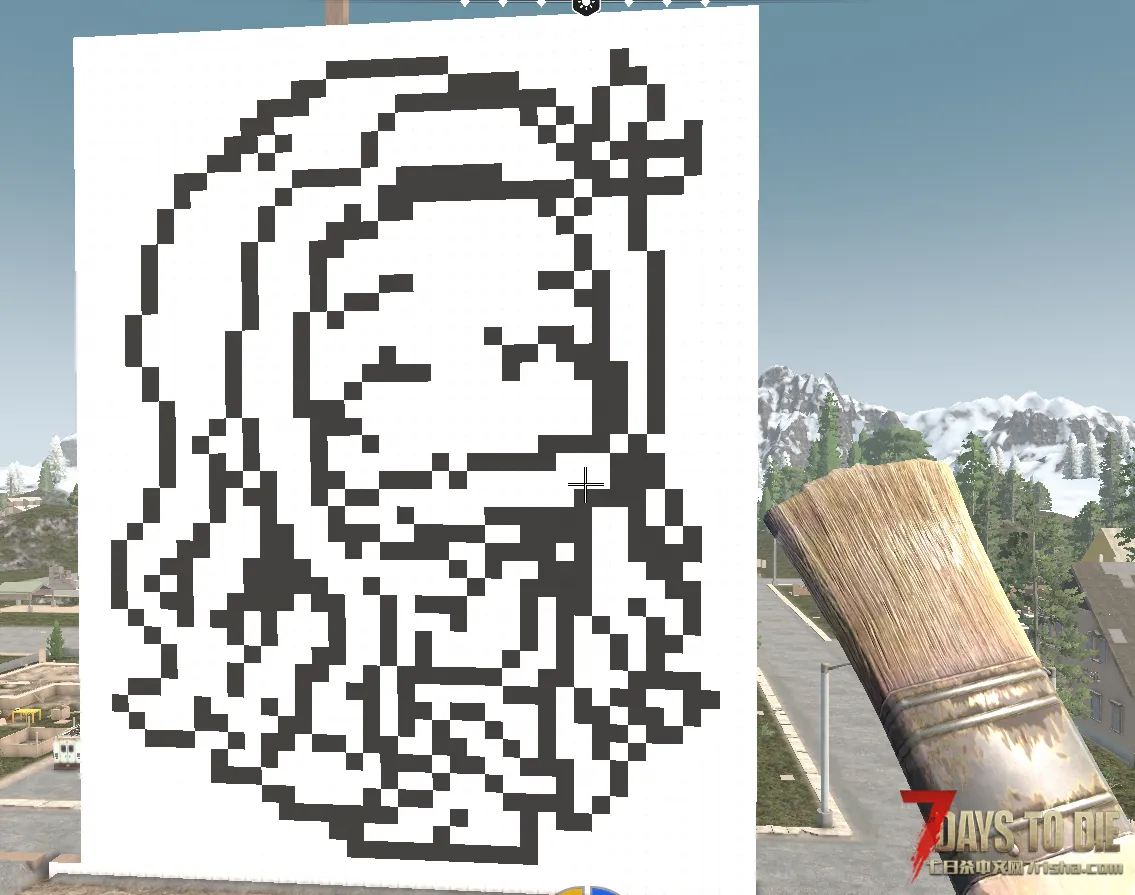 这只是颜色材质的相当简单的用法,因为油漆刷不仅可以涂一面,还可以将整个方块涂满,有了带颜色的方块,像“我的世界”里一样的巨型雕像当然也可以在七日杀里造出来了。
