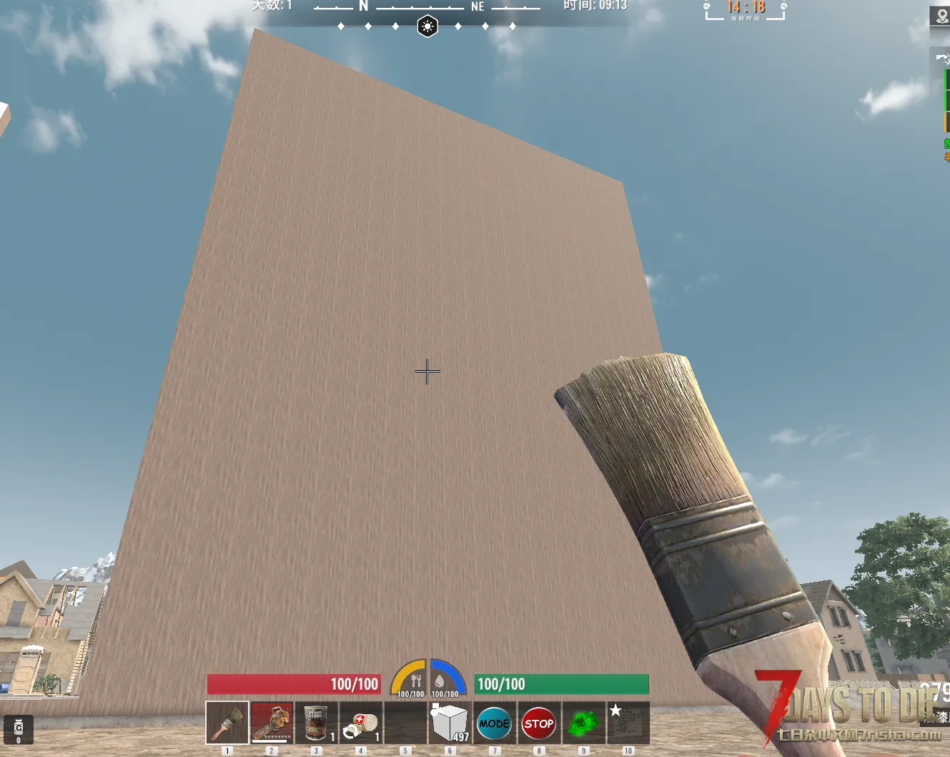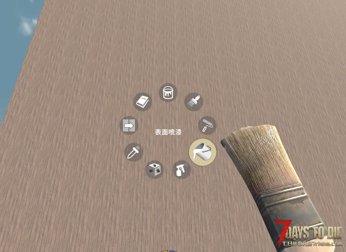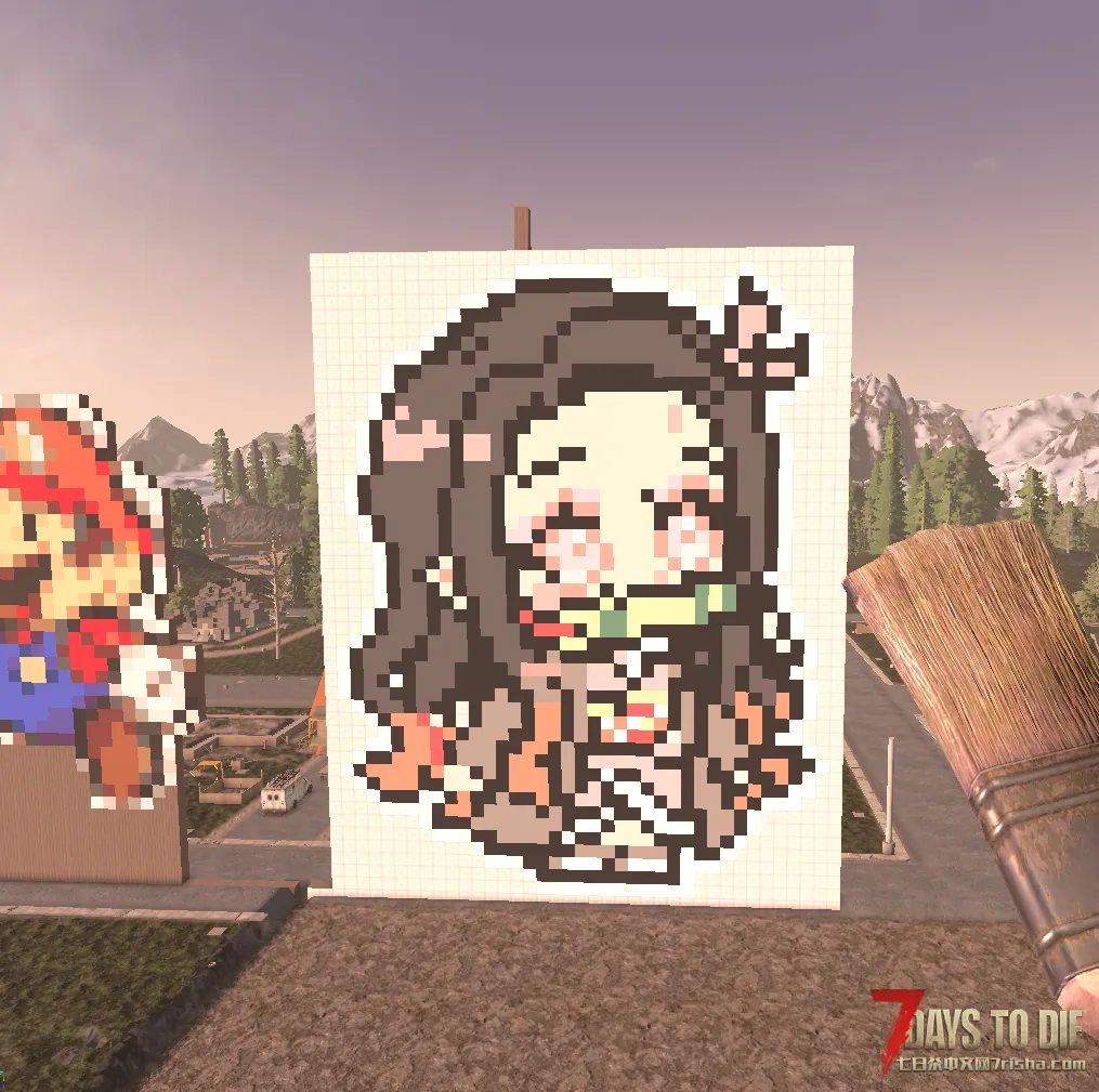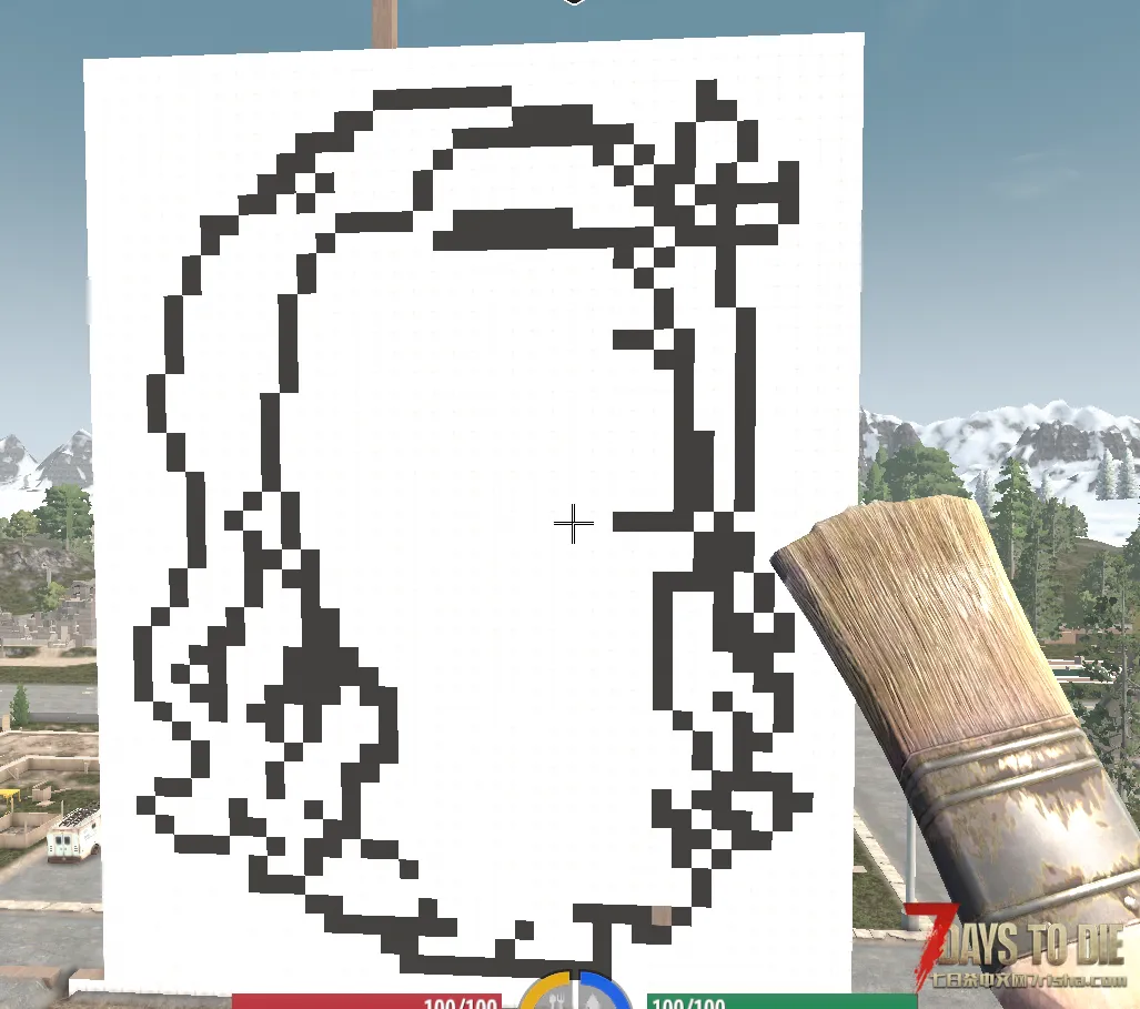 这只是颜色材质的相当简单的用法,因为油漆刷不仅可以涂一面,还可以将整个方块涂满,有了带颜色的方块,像“我的世界”里一样的巨型雕像当然也可以在七日杀里造出来了。