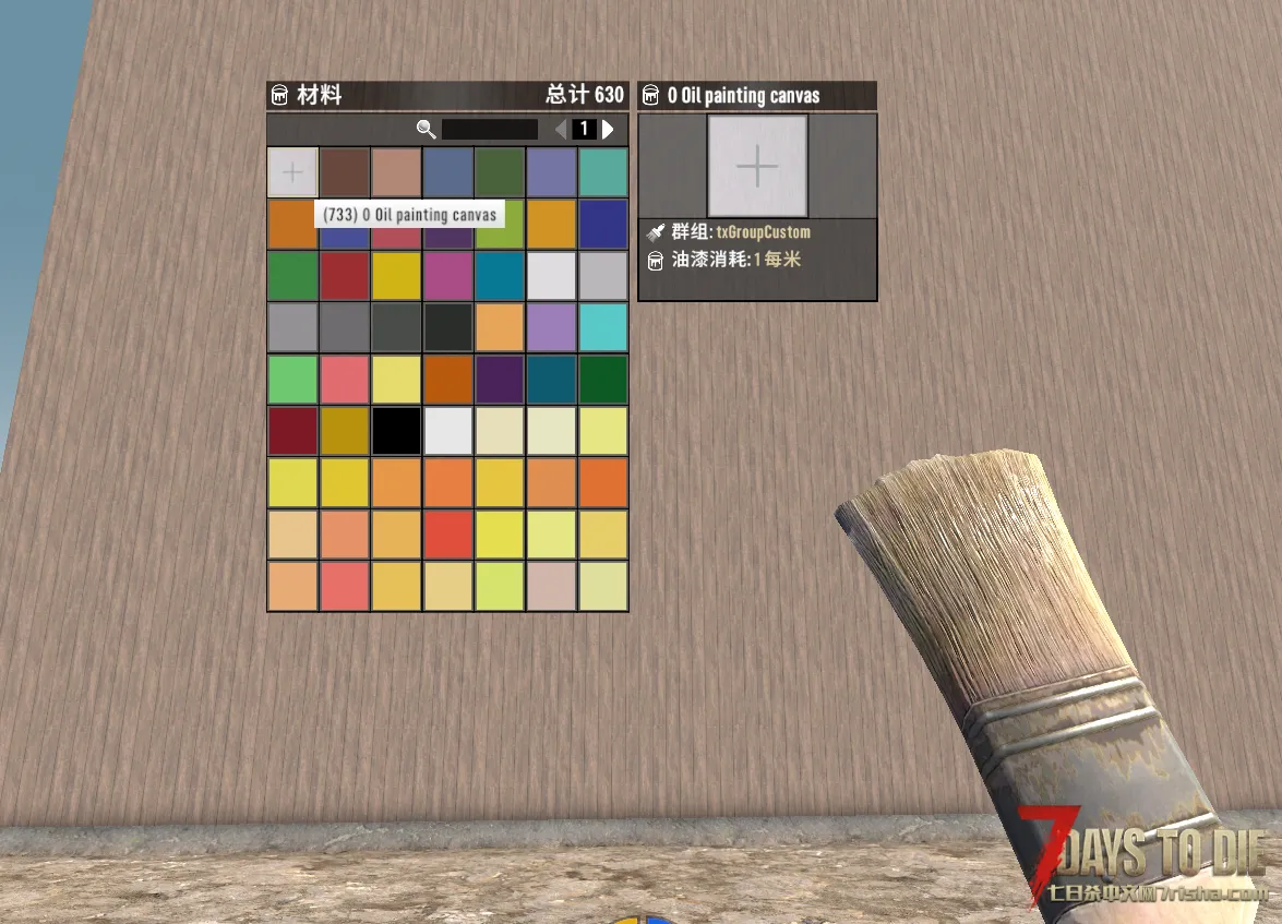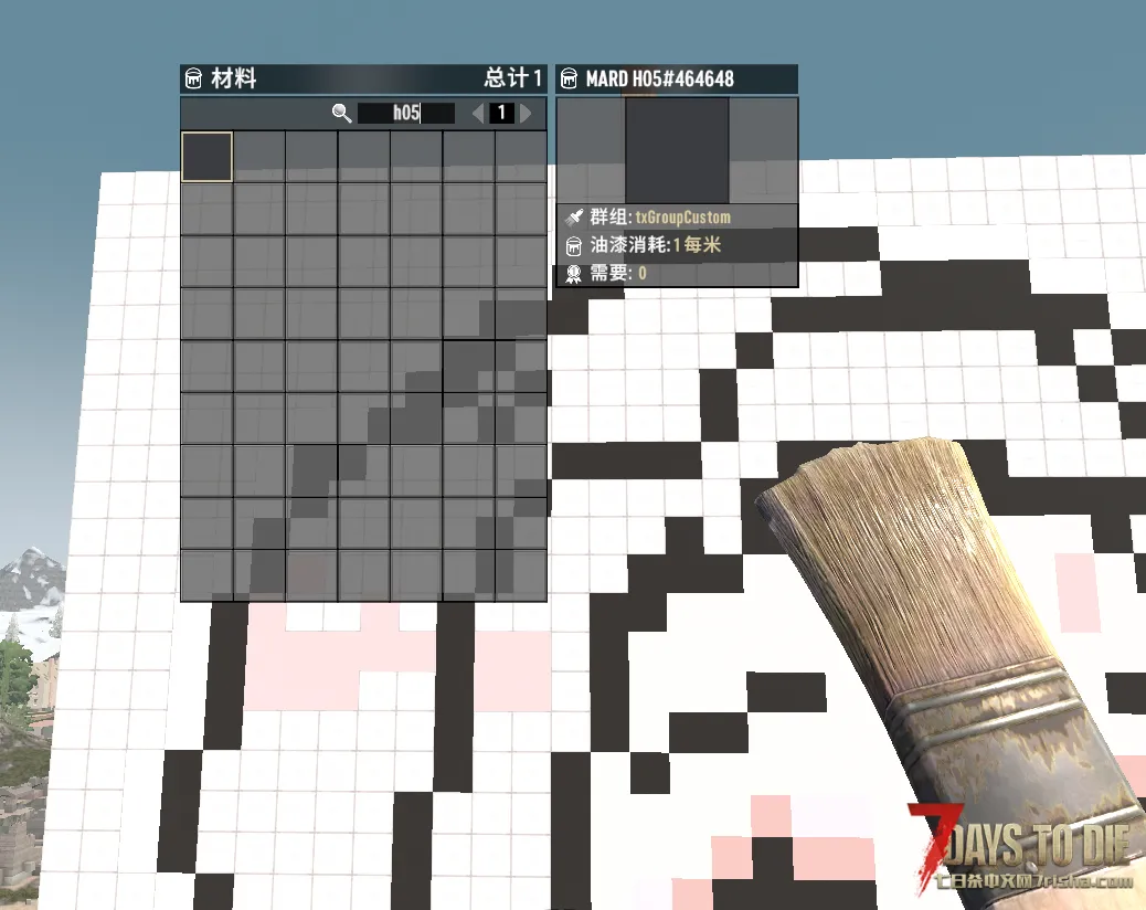 首先下载我的MARD色系油漆材质(拼豆色系方便出图纸)和油画布材质(用于打网格),下载方法请到我的发布贴查看:原创-油漆材质V2.5-my_paint_mard_colorsMARD色系221色(拼豆专属色系) – 七日杀V2.X模组下载 – 七日杀中文网
