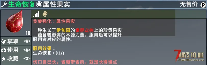 · 生命恢复果实 → 生命恢复 +0.1/秒