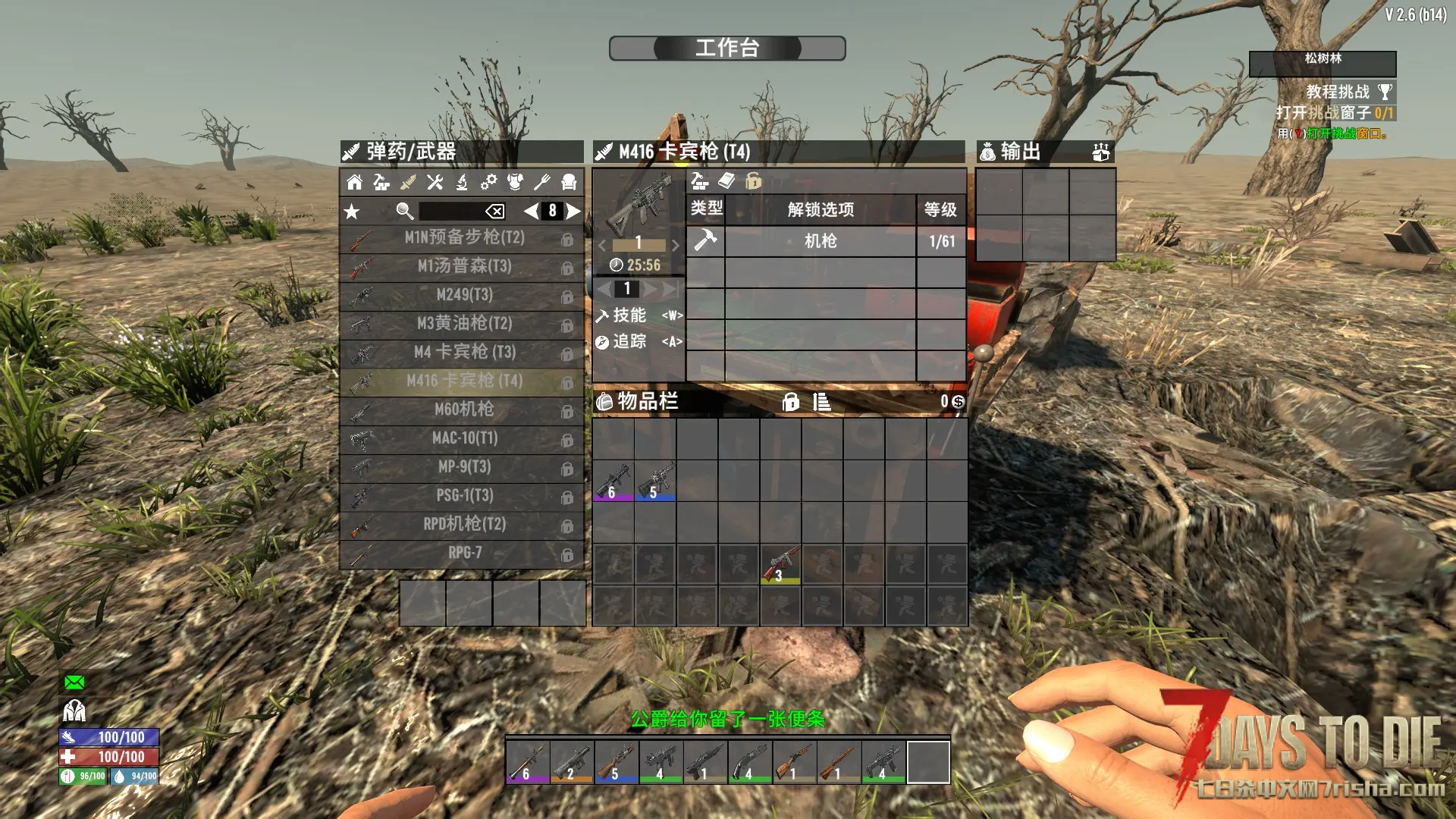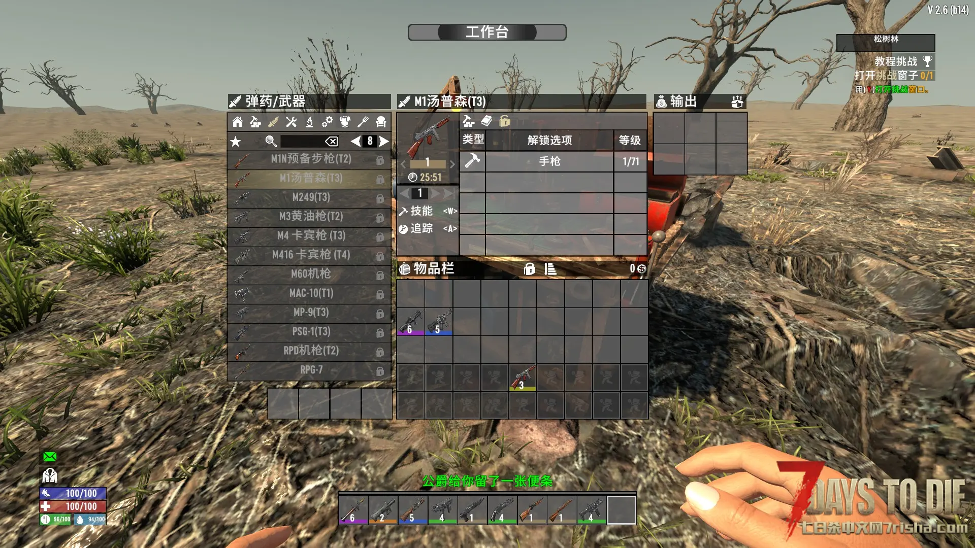 武器解锁方法与原版类似。需要读书到一定数量→工作台制造