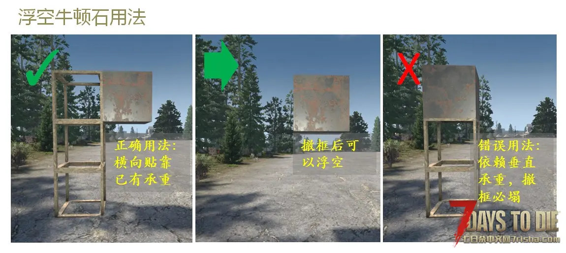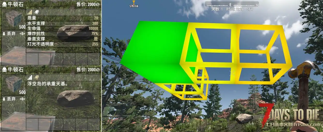 V2.6官方取缔树浮空之前,有多少小伙伴在云雾缭绕中建立了自己的天宫、空中楼阁、悬空堡垒、高海拔农场?不仅仅是为了免除丧尸对建筑的无休止破坏,或者逃避贞子阿姨的地面搜捕,更是为了那份猎奇的乐趣与创作探索的自由。这个浮空MOD改造自系统自带的漂浮块,增加到跟锻钢同等的10000点HP,用生铁维修。部署的过程极其简单,无需垫土种树,只要贴近任意高度的物块横向放置即可;扩展更加无脑简单。但请注意:纵向垂直放置在已有物块上并不能激活浮空。
